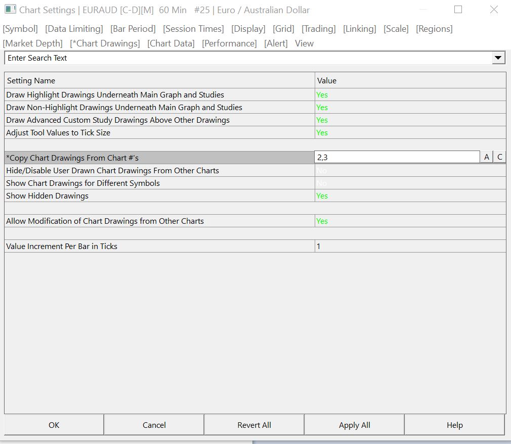 Good afternoon, Could I please get some advice as to what settings to change to be able to see drawings and not have them under other drawings? In the picture I have a zone drawn by a Horizontal Line and any drawing that interconnects with it does not allow to see it such as the red Ray line. I have looked in Support Forum and SC instructions but have not yet been able to resolve the issue. Please let me know, Regards |
