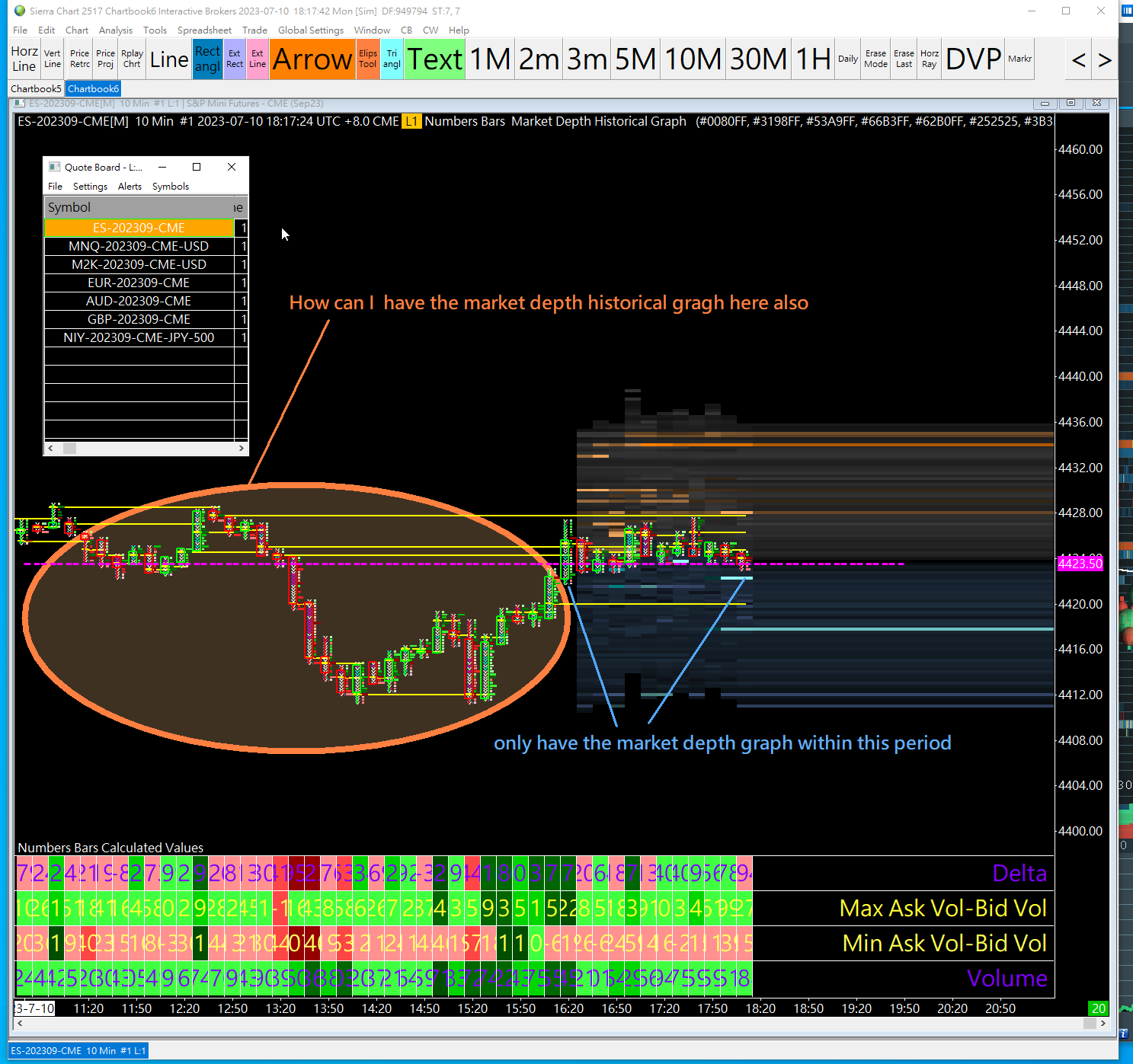 Hi, I have add the market depth historical graph. I don't know why it ohly show the details of around 100 minutues ago. Attached please see the picture. Please advise how I can have the details extending to 4 or more hours ago Thanks |