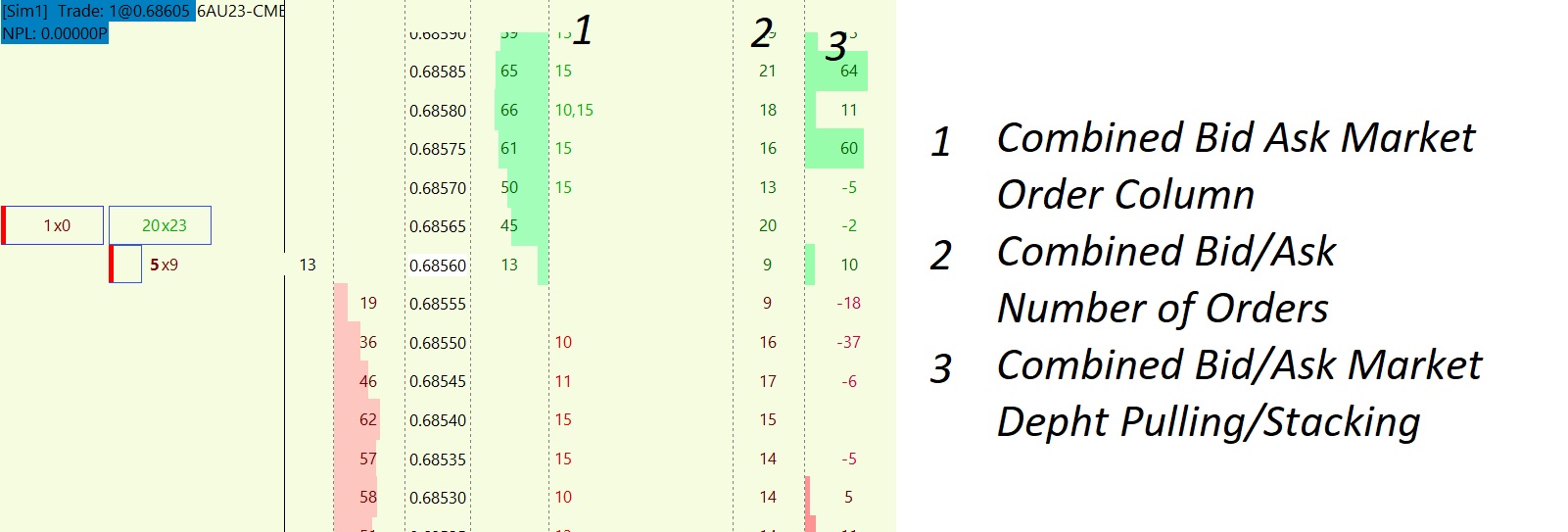 hello! I use the program version 2517, package 12, in the settings of the SierraChart data - all services. I am interested in watching the 1. Combined Bid Ask Market Order Column; 2. Combined Bid/Ask Number of Orders; 3. Combined Bid/Ask Market Depht Pulling/Stacking columns. I have a complete picture on futures, but not on stocks. Support tell me what I have not configured correctly? I have drawn two drawings on which the problem is attached.