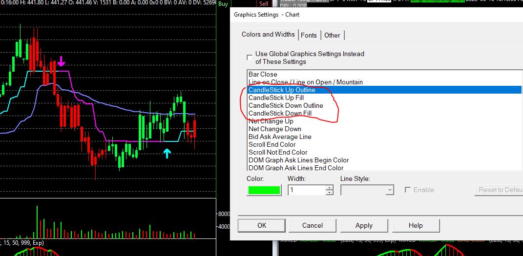 1. We do not understand what you are wanting to do here. We need more information. 2. Select "Chart >> Graph Draw Types >> Candlestick Bars Hollow". Refer to the following: Graph Draw Types: Candlestick Bars Hollow For the most reliable, advanced, and zero cost futures order routing, use the Teton service: Sierra Chart Teton Futures Order Routing |