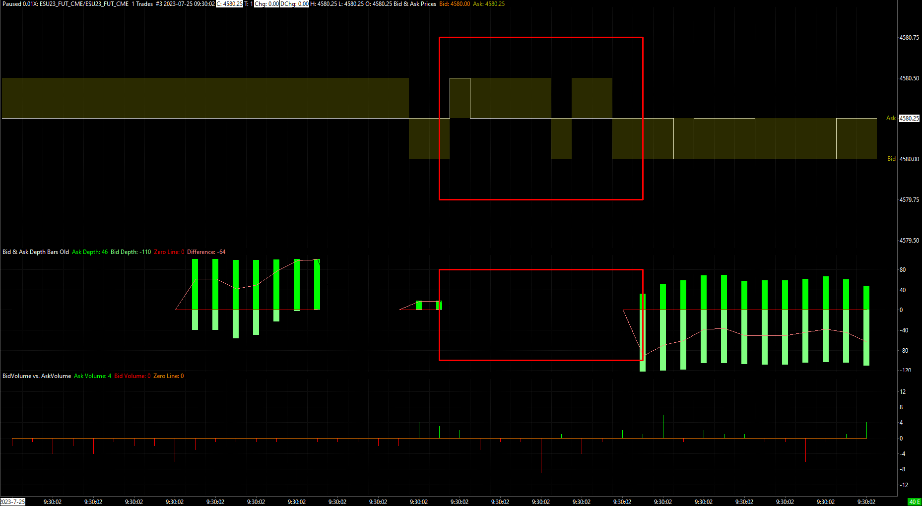 Hi SC Support, I am still in a bit of state of confusion in regards to why bid ask depth bars have gaps in them on a 1 tick chart. when i replay the dom at .01 replay speed, there are dozens of updates just at the best bid and ask alone between most trades. I have not been able to come to a logical conclusion why - if the data is there and is being accessed by the bid/ask depth bars - there are times when the entire duration spent at a new bid and ask price where trades have taken place, and these ultra low time frame replays are clearly showing depth (and constantly updating depth at that) at BBO, that depth is not visualized or represented in anyway on the chart. Would you be willing to provide some clarification here? Understanding this might help me better reconstruct the tick by tick depth in my own study as I've been trying to accomplish for some time, however, the documentation is limited in this area. As a side note -- the "Bid/Ask Depth Bars (Old)" study does not run into the issue that the current/new "Bid/Ask Depth Bars" study does, in reference to printing the subsequent bar's/price's depth ahead of time due to the time stamping issue (depth data from exchange updating in 1millisecond increments as opposed to transactions 1microsecond incrementing incrementing update approach) as noted in the Data Recording Modes -bid_ask_trade_sync documentation. I have yet to find anything on your website that dives into the fundamental differences of the studies and why the new one is better, but perhaps in a feature update, the benefits of each could be integrated into one. For instance, in the "old" study, the ability to select what depth levels to access for the selected symbol within the chart is a seriously convenient function. Unfortunately I don't think there is any provided source code for this version of the study. The ability to have multiple depths in one chart to use basic arithmetic studies vastly cut down on your systems processing needs since an unnecessary number of charts and study/price overlays would not be required. Not to mention the added system stress of using a spreadsheet study that may be required in the mix as well. I hope this serves as useful feedback and am always looking forward to what features future updates hold. Thank you Date Time Of Last Edit: 2023-07-21 18:51:24