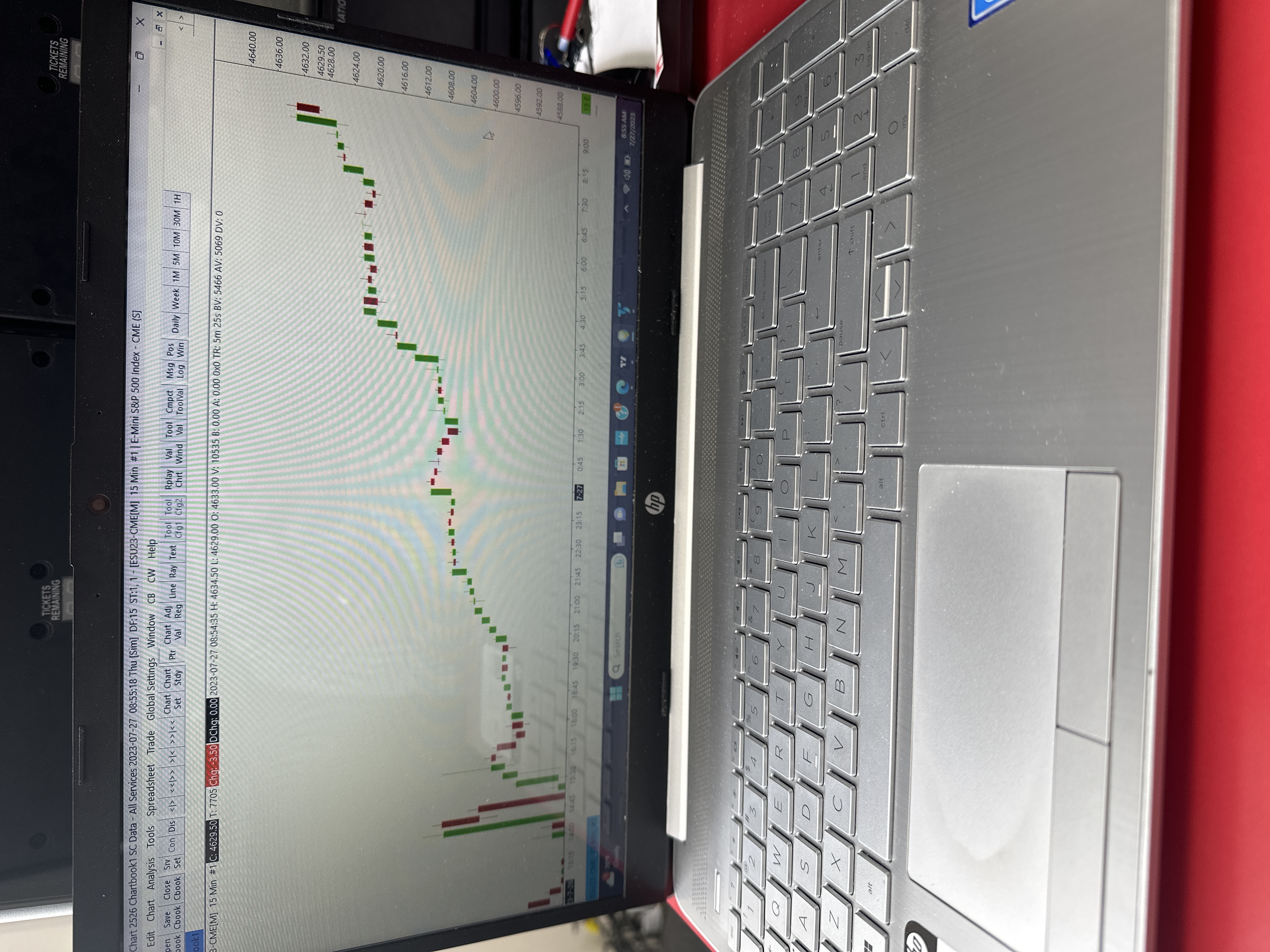 The following line in your log is the reason for the issue: "Denali Data Feed | Logon error received from server: Connection limit exceeded. | MaxConnectionsDifferentDevices = 1, NumCurrentConnectionsDifferentDevices = 2 | 2023-07-27 08:18:07.940" This means that you are connected to the Denali Exchange Data Feed from two different computers at the same time. Refer to the information here: Denali Exchange Data Feed: Denali Exchange Data Feed on Two Computers Simultaneously For the most reliable, advanced, and zero cost futures order routing, use the Teton service: Sierra Chart Teton Futures Order Routing |