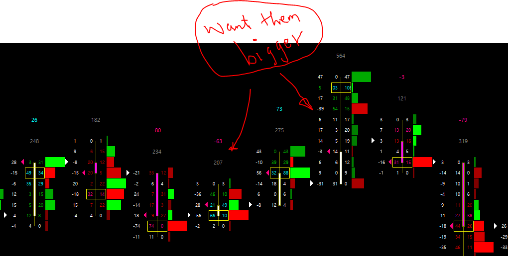 The actual font that is used (Calibri, Tahoma, etc.) is not changeable just for the Numbers Bars study, you would have to change the Global Text Font that is used to make a change to font for all chart text. Refer to the following: Graphics Settings: Chart Text - (current font name) In terms of the size, you can change this with the following Inputs on the Numbers Bars study: Numbers Bars: Font Size Mode For the most reliable, advanced, and zero cost futures order routing, use the Teton service: Sierra Chart Teton Futures Order Routing |
