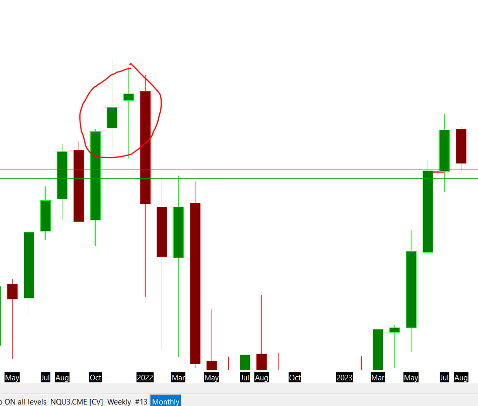 Different monthly candles for continuous NQ historical charts for Sierra Chart and TV