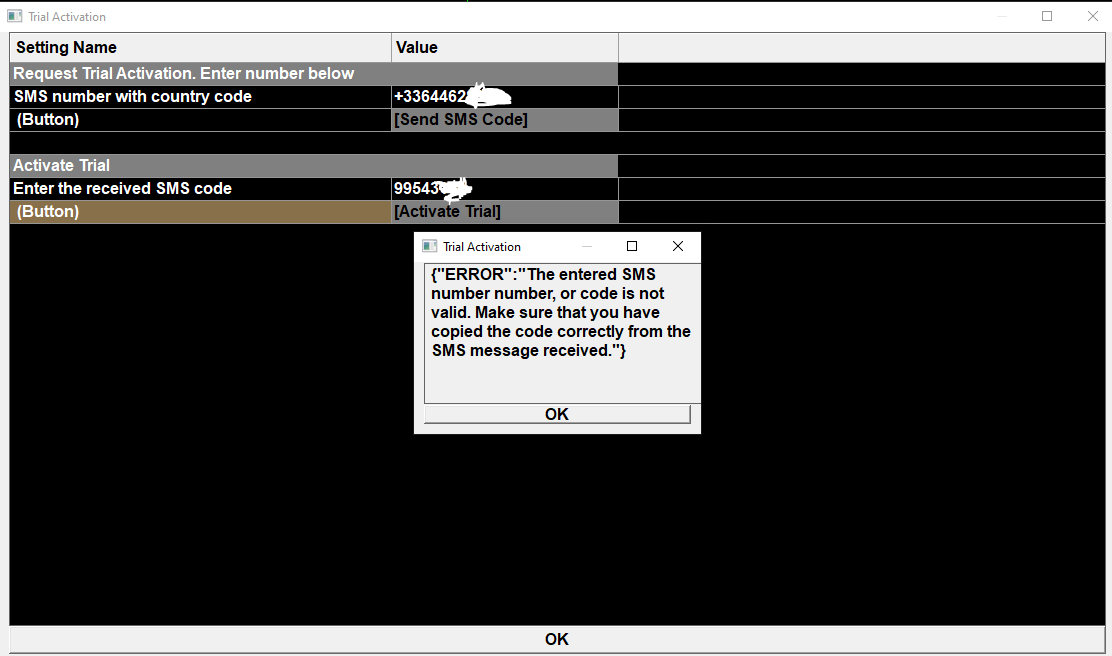 Hello, When I use the code I received to activate the trial it says the code is not valid. Can you please help me solve this error? Thank you. |