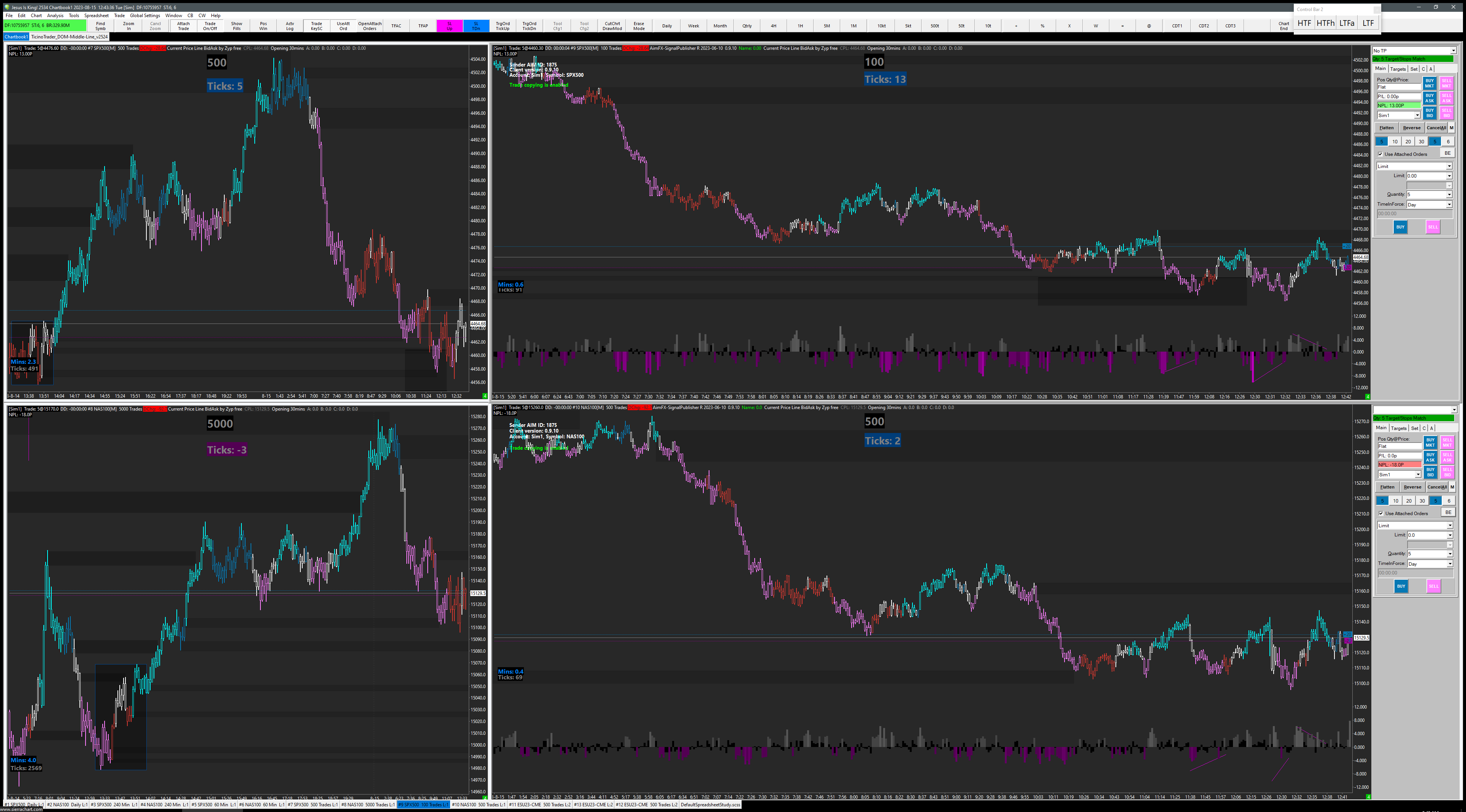 Hello SC Team, I trade in a way that watches multiple time frames for ES and NQ. I like to keep the charts linked so that I can compare what is happening on both instruments vertically with my eyes, as in the screenshot below. Is there a way to force two charts to show the same amount of time on the x-axis, despite being a different timeframe? For example, in the screenshot, I have on the right hand side a SPX500 chart in 100 ticks, and below it is a NAS100 chart in 500 ticks. These are fairly close matches and I need to see the tick structure, as opposed to watching say 5-minute candles. Can these charts be set in such a way that as I zoom around in and out, they stay showing the same amount of time? Perhaps by forcing this action via a spreadsheet or ACSIL commands, if it is not natively supported? Thank you for any advice, Mike https://www.sierrachart.com/image.php?Image=1692103418329.png |