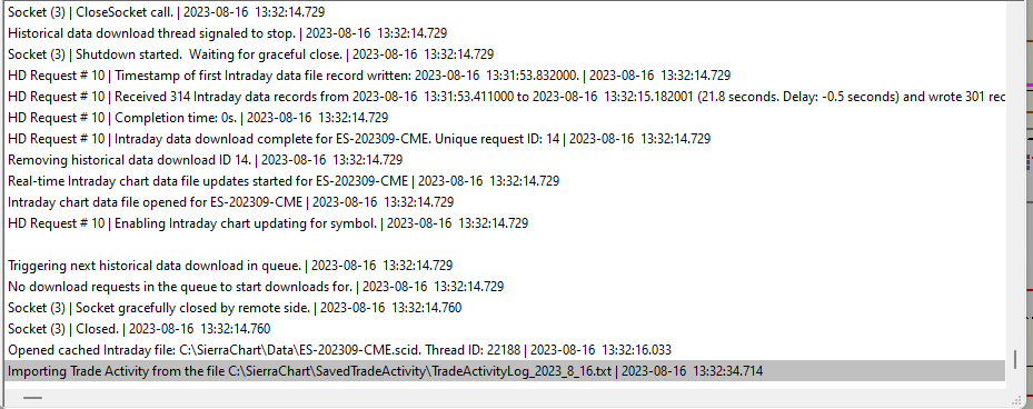I exported trade activity into the trade activity log, and then I cleared the trade activity. When I tried to imort the trade activity, I couldn't import it. Please helpme to import the trade activity. I can import the trade activity into my trading journal at tradesynch.com, but I can't import it back into sierra chart trade actvity. I attached the message log. I am not getting anything useful from it. please send me a request and I can send my message log for analysis.