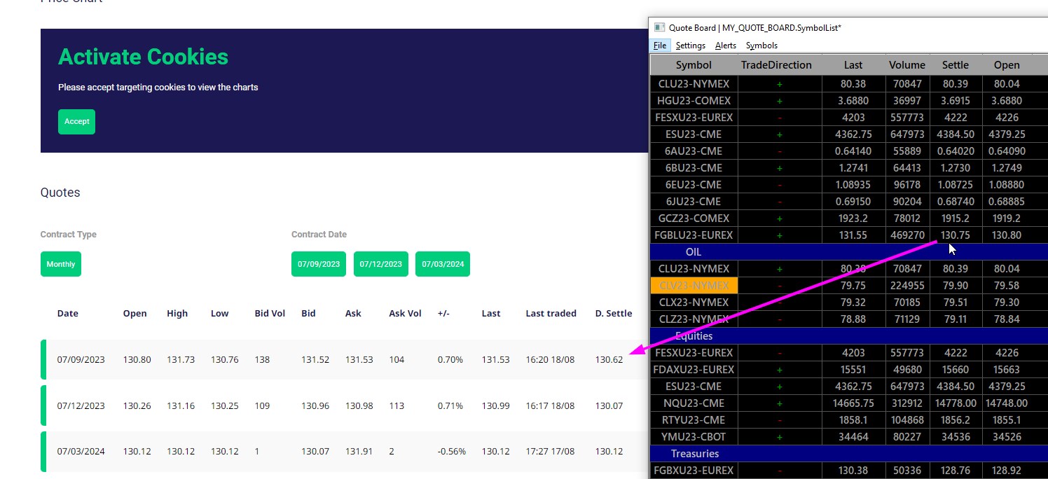 Quote Board Settlement Prices wrong where can these be adjusted? Denali Data Feed in use