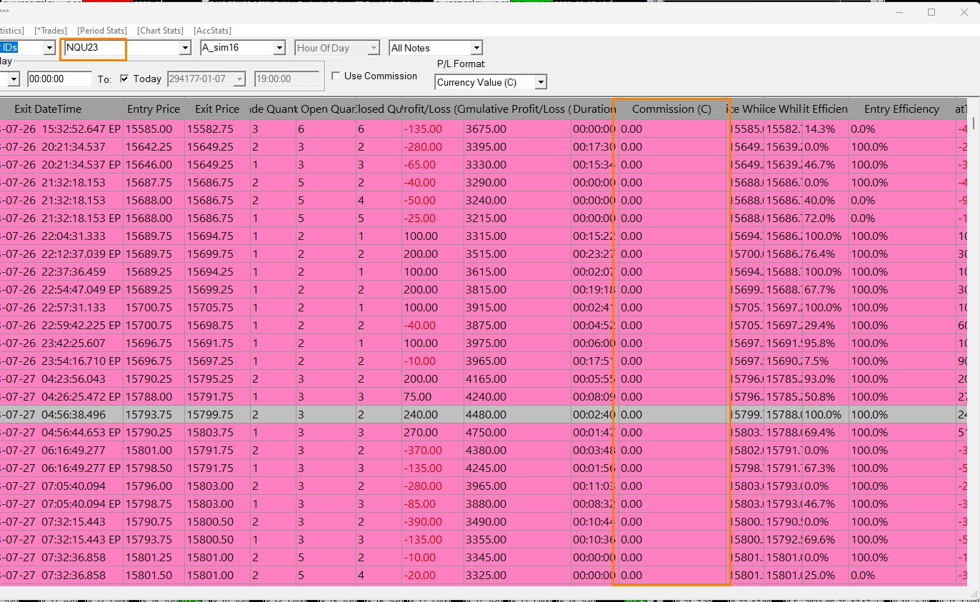 On the Trade Activity Log in the section at the top with the filters, is a box for "Use Commission". This needs to be checked for the commission to be added. Refer to the following: Trade Activity Log: Use Commission For the most reliable, advanced, and zero cost futures order routing, use the Teton service: Sierra Chart Teton Futures Order Routing |