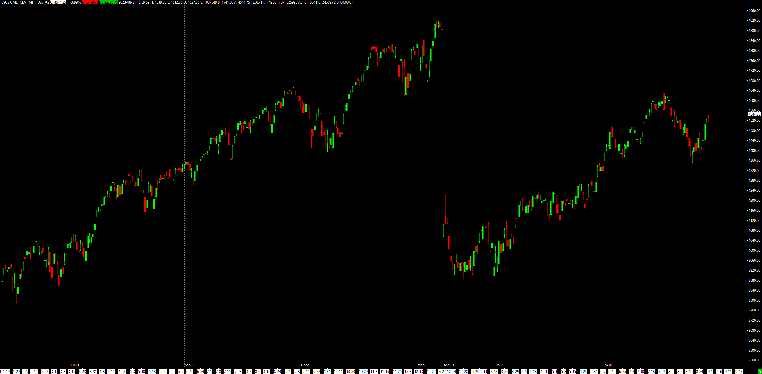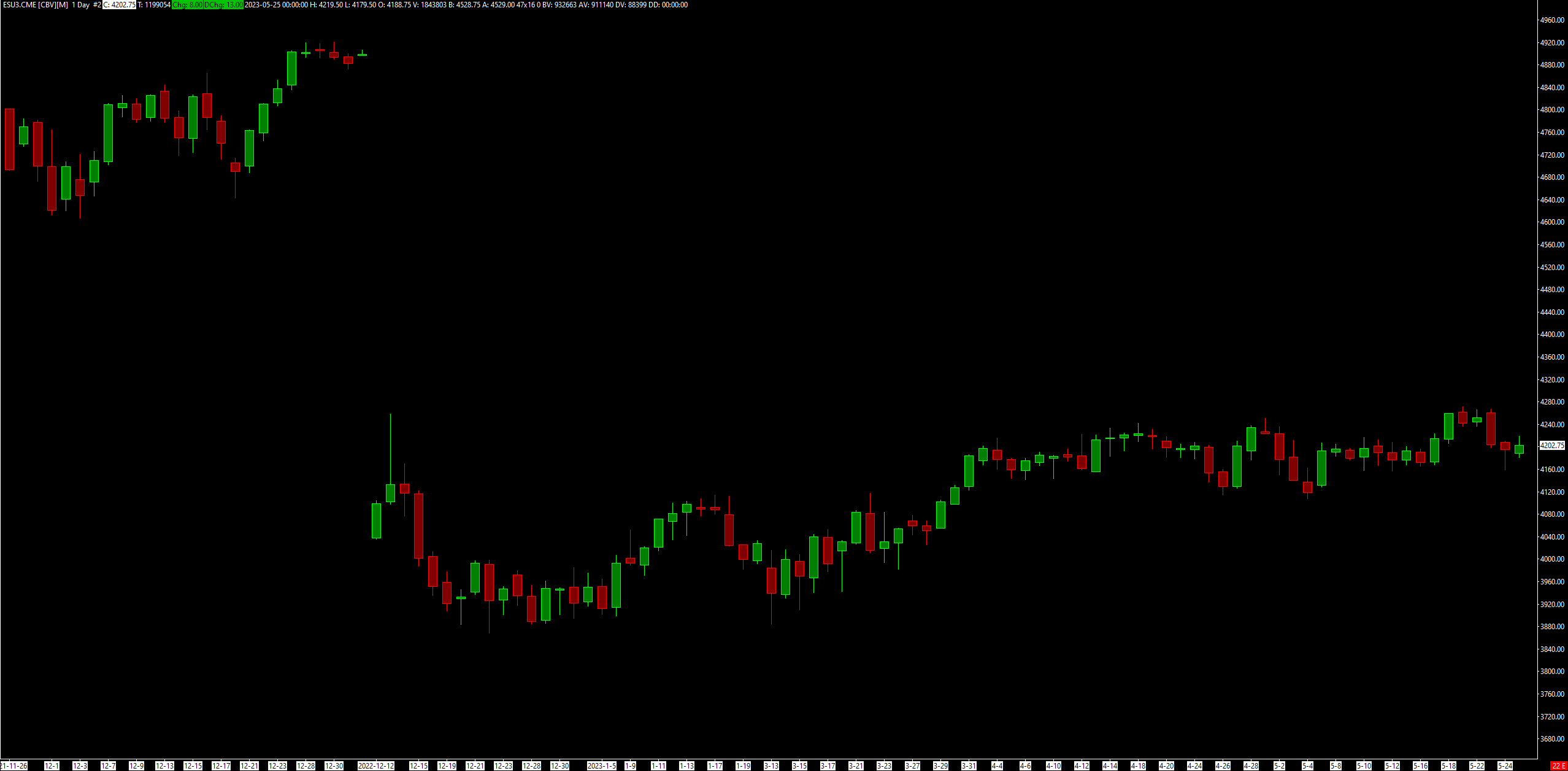 Good morning, and thank you very much in advance for your help. I have tried what I've seen in support board and in the documentation about missing data, but couldn't fix this problem. I cannot get the 2022 data in a daily chart data from ES. I have tried to set up timezones in different ways, I have put the intradays data and historical data to download more to the days I need, and all of this didn't work. Here you can see the screenshot of the chart I get when I try to download 1000 days to my daily ES chart. Hope you can help me as soon as possible. Thank you very much. Kind regards. https://www.sierrachart.com/image.php?Image=1693559647552.png |