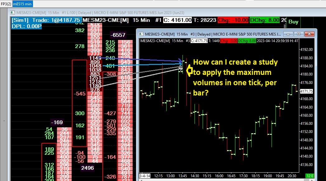 Subject updated from 'Indikator Sierra Chart Indikator' to 'Indikator Chart Study' -------------------------------------------------------------------------------- Hello . sorry for worrying.. Is it possible to create a Chart Study , mark a large trading volume on a bar ? Have several small marks on the price bar ? drawing in attachments |