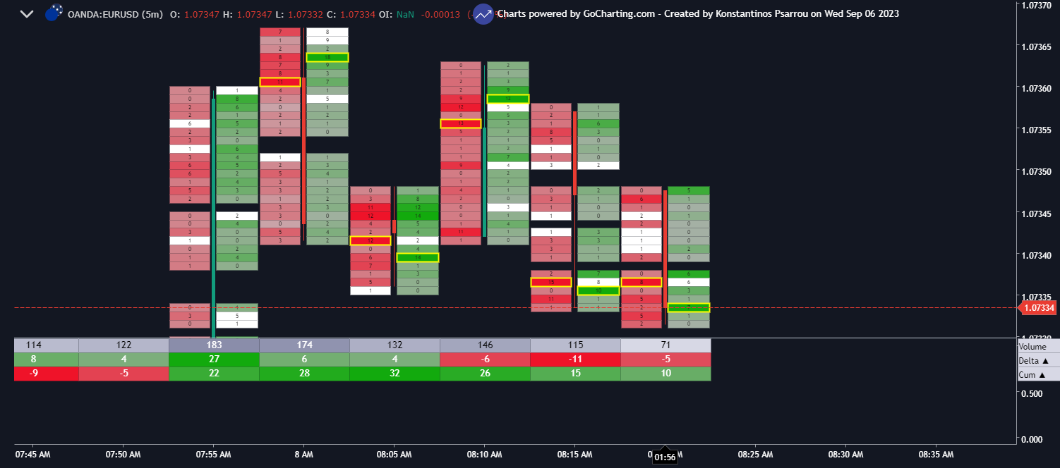 Hello, I would like to ask why the footprint or cluster on the Sierra chart and Go Charting platforms are so different as reference ( bid and ask ) (numbers) also the DELTAs are different. Both charts are exactly the same as the reference 5 minute chart and the time is the same. Sierra chart uses the DATA from FXCM and Gocharting uses the DATA from OANDA. I really appreciate your insight as I am trying to figure out what is going on. Below I have 2 screenshots so you can see what I mean. Thank you very much.