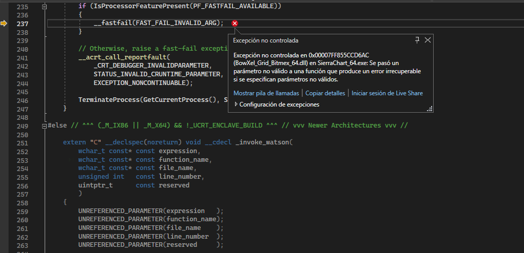 Greetings, Sierra Chart team. I've been working on automated trading system and today when I tried to compile via C++ to start debugging I got this error message. I request your help as I definitely don't know what the error refers to. I had already compiled and debugged the same file before and the error appeared in an unusual way. As a final comment, I let you know that when you press any of the buttons in the dialog box, Sierra chart closes |