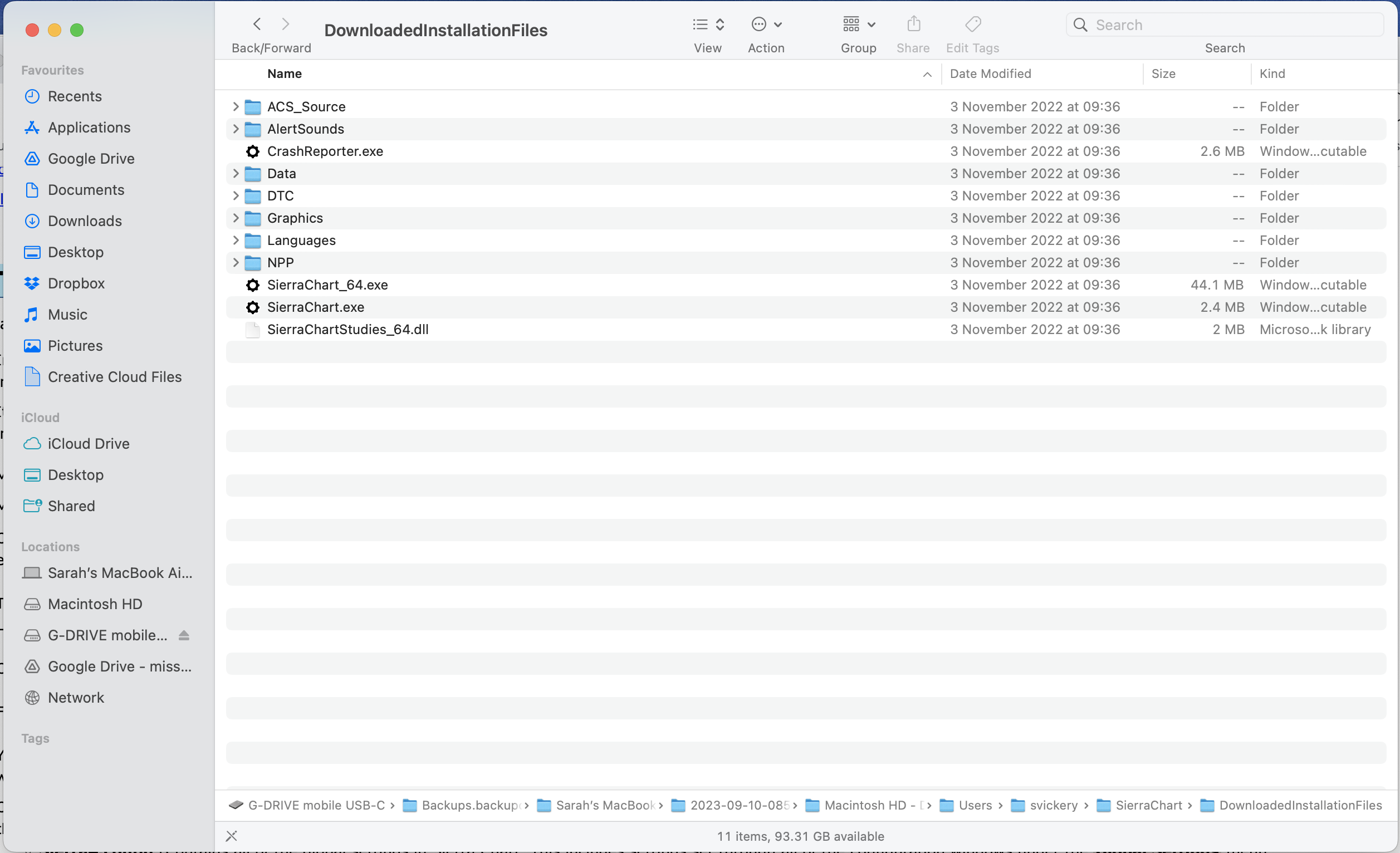 How do I retrieve my SC settings and chartbooks? We are not very familiar with Crossover or Mac. However, wherever Sierra Chart was installed to previously there will be a Data subfolder containing your Chartbooks and the main folder will contain the Global settings in .config files.More information: Transferring Sierra Chart Settings and Data From Existing Installation to New Installation Sierra Chart Support - Engineering Level Your definitive source for support. Other responses are from users. Try to keep your questions brief and to the point. Be aware of support policy: https://www.sierrachart.com/index.php?l=PostingInformation.php#GeneralInformation For the most reliable, advanced, and zero cost futures order routing, use the Teton service: Sierra Chart Teton Futures Order Routing |