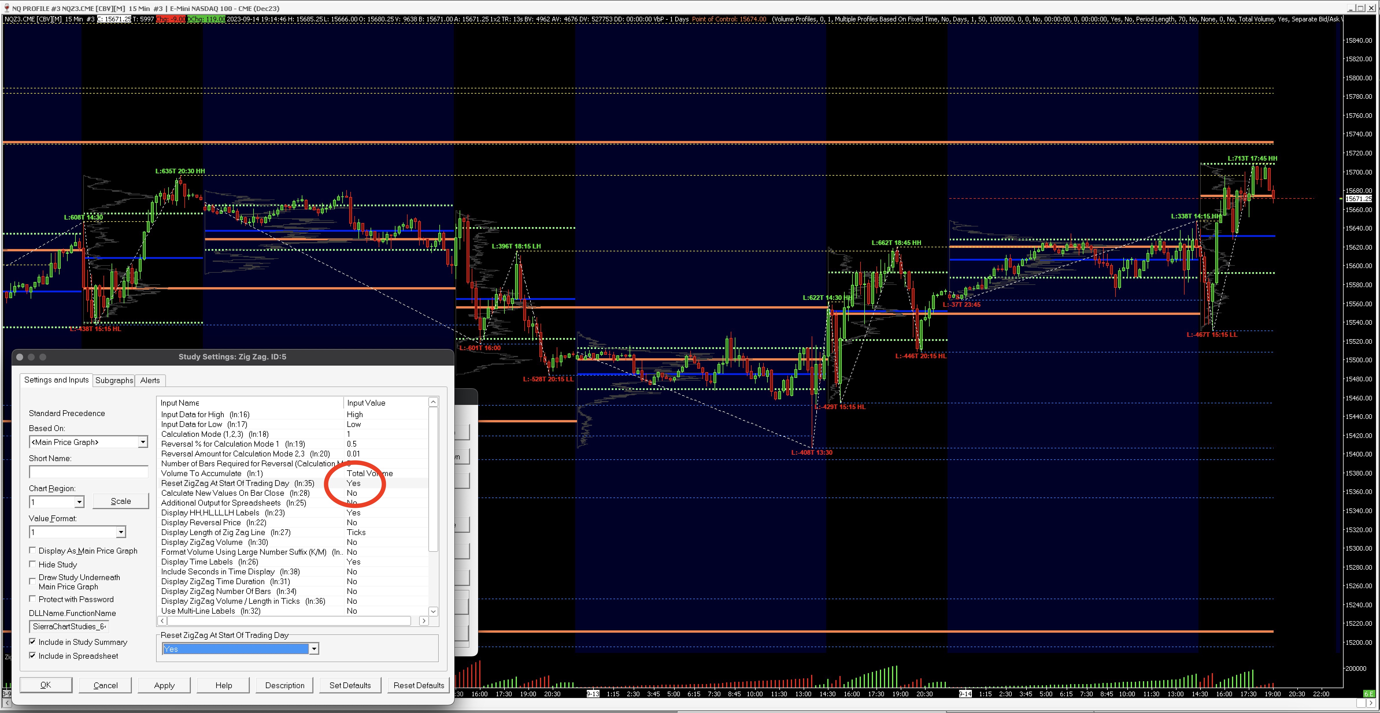 I want ZigZag to Start at the Day Session Not Eve Session!