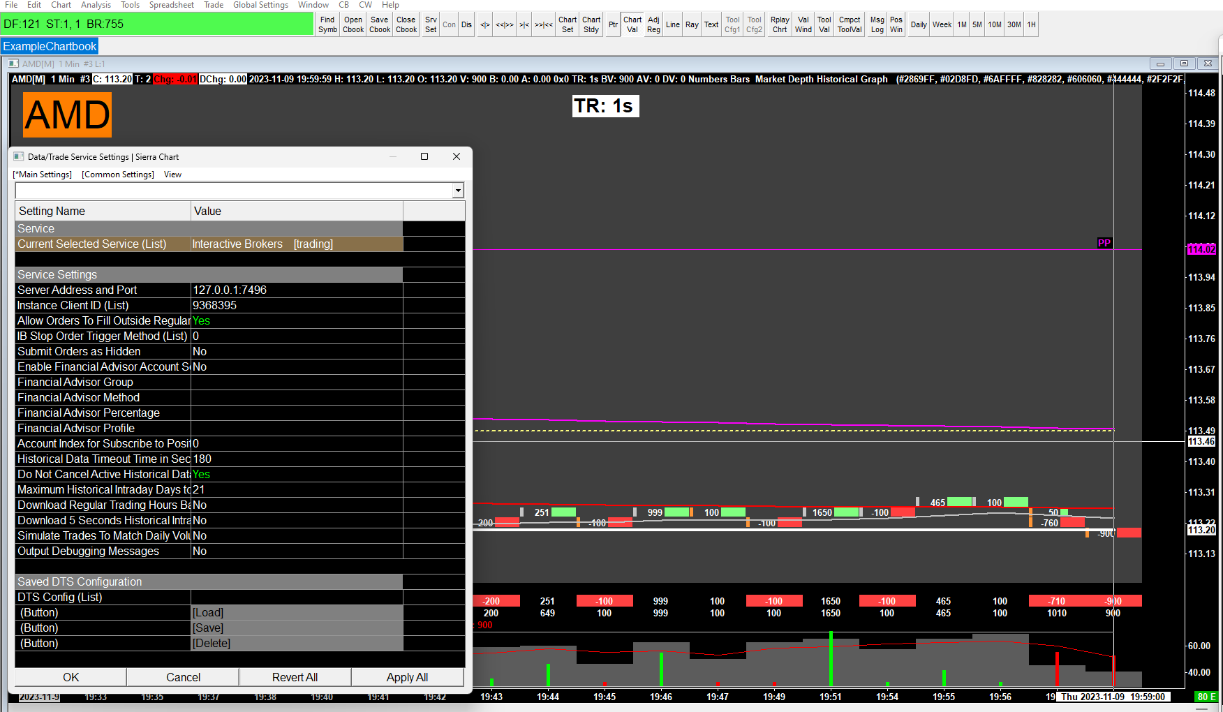 here you can see my settings IB connected. i dont want to trade on sierra only see the live data on my chart. please try to help/solve before market opens its asap thanks Date Time Of Last Edit: 2023-11-10 07:31:25
