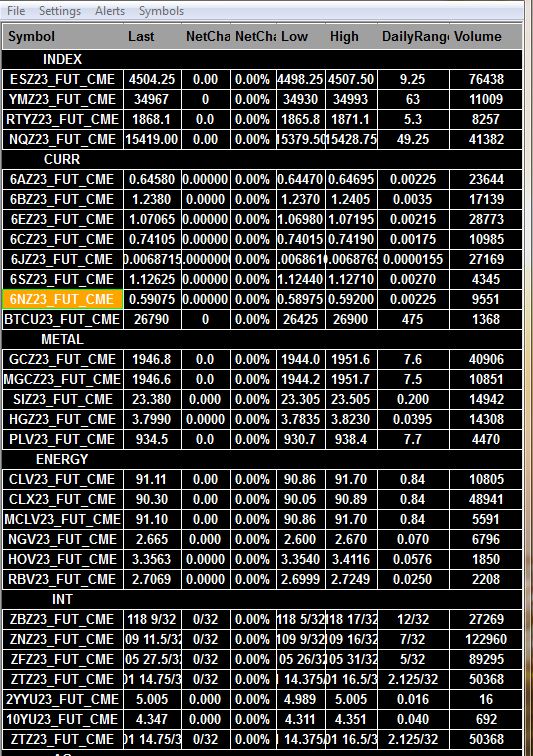 We are aware of this of. This is an issue on the CME side. And it does not matter whether other programs are having this issue or not. This is a definite issue on the CME side which we have verified. There is nothing we can do about it. The settlement data should be coming Monday afternoon. Sierra Chart Support - Engineering Level Your definitive source for support. Other responses are from users. Try to keep your questions brief and to the point. Be aware of support policy: https://www.sierrachart.com/index.php?l=PostingInformation.php#GeneralInformation For the most reliable, advanced, and zero cost futures order routing, use the Teton service: Sierra Chart Teton Futures Order Routing Date Time Of Last Edit: 2023-09-18 11:30:34