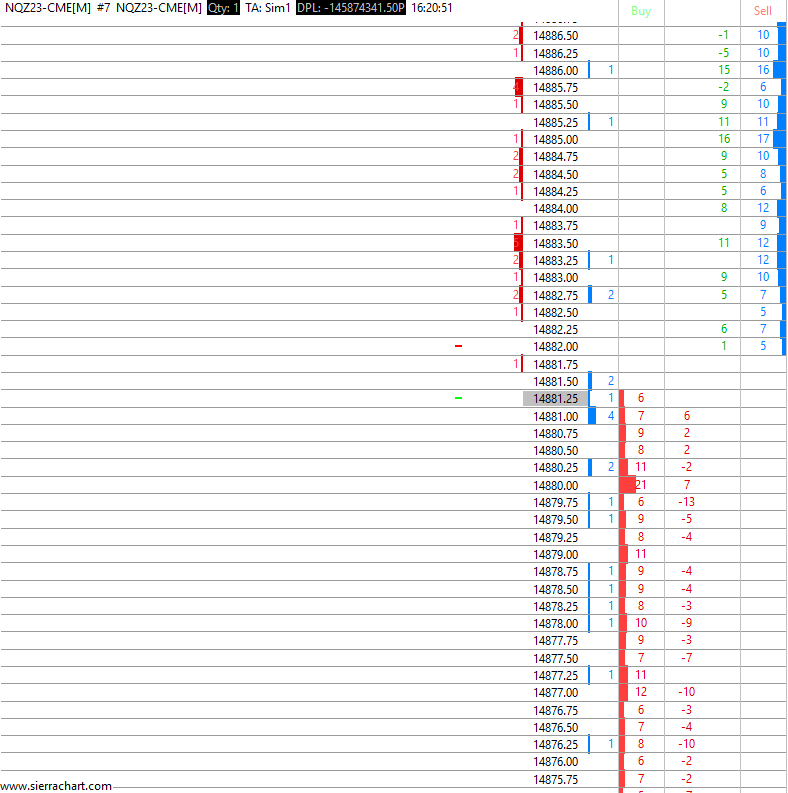 Please see below link: https://www.sierrachart.com/image.php?Image=1695414055771.png My expectation is that the recent traded bid/ask as well as the bid/ask size columns would have larger numbers like 100, 158, 260 etc instead of just showing 5, 8, 9 etc. This is for NQ futures. Thanks again. |