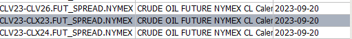 Perhaps you did not read my text, and just looked at the spread I highlighted in my uploaded image.being that it's not possible to highlight something that's missing I was hoping you would clearly see what was missing(NGV23-NGX23.FUT_SPREAD_NYMEX)after reading my text. In short the list should be... OCT23_OCT26 OCT23-NOV23 OCT23-NOV24 OCT23-NOV25 NOT ------------- OCT23-OCT26 OCT23-NOV24 OCT23-NOV25 (See Crude oil uploaded image as an example or look again at the NG image December contracts You will see the OCT-DEC chain begins with NGV23-NGZ23 not NGV23-NGZ24. More Specifically with the correct symbols NGV23-NGV26 (END OF THE OCT-OCT CHAIN Now OCT-NOV should begin with NOV 2023 not NOV 2024) NGV23-NGX23....This is the missing spread Date Time Of Last Edit: 2023-09-23 22:41:57