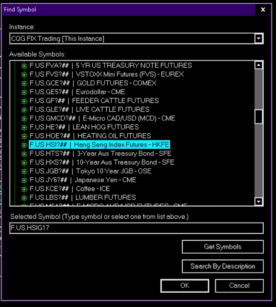 Using InteractiveBrokers Also missing following (futures) symbols/contracts in: File > Find Symbol - XINA50 (FTSE/Xinhua China A50, Singapore Exchange, sgx.com) - CES120 (CES China 120 Index, HK futures exchange, hkex.com.hk) - HHI.HK (Hang Seng China Enterprise Index, HK futures exchange, hkex.com.hk) Date Time Of Last Edit: 2014-07-26 20:01:38