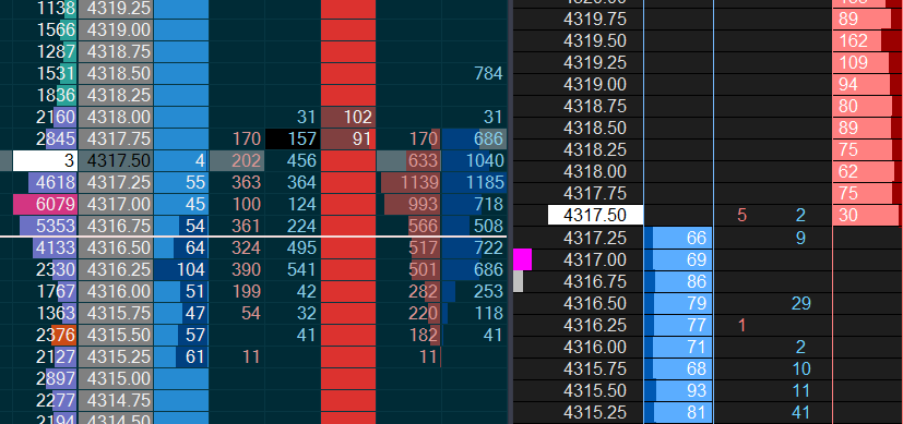 hello, i recently switched to sierra from jigsaw. i have nnoticed the "recent trades" column is different between the two. i have both chart update intervals set to 200ms. any reason why there is such a descrepancy between the two? i have attached a screen shot (jigsaw on the left, sierra on the right). i have spoken to some fellow traders and they dont have an answer. any help is appreciated.