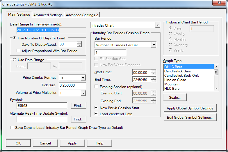 To overlay one chart with a different timeframe per bar on to another, use the Study/Price Overlay study: http://www.sierrachart.com/index.php?l=doc/helpdetails28.html Not sure though if this is what you are looking for. There is no problem with using tick by tick data for everything else. The problem is that the filtering does not actually filter the trades, only the volume numbers themselves. Sierra Chart Support - Engineering Level Your definitive source for support. Other responses are from users. Try to keep your questions brief and to the point. Be aware of support policy: https://www.sierrachart.com/index.php?l=PostingInformation.php#GeneralInformation For the most reliable, advanced, and zero cost futures order routing, *change* to the Teton service: Sierra Chart Teton Futures Order Routing |