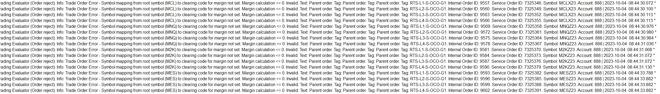 Trading Evaluator (Order reject): Trade Order Error - Symbol mapping from root symbol