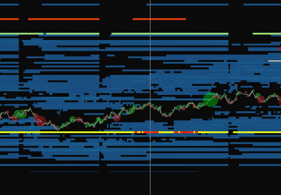 Hello, I was wondering if anyone knew why my heatmap was "tearing" for lack of a better word. In the attached photo you can see the vertical gaps that appear. I confirmed that orders at those levels were not changing so I don't know what is happening exactly. Does anyone know a fix for this? Thank you. |