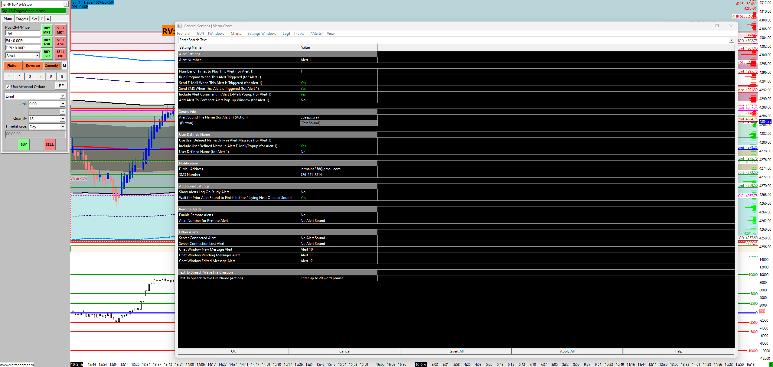 Hey Support How can i setup SMS messages alert to my phone I try but it didn't work its works for emails but not for sms phones alert . Could yo guys help me please and tell me what i'm i doing wrong https://www.sierrachart.com/image.php?Image=1696575613435.png |