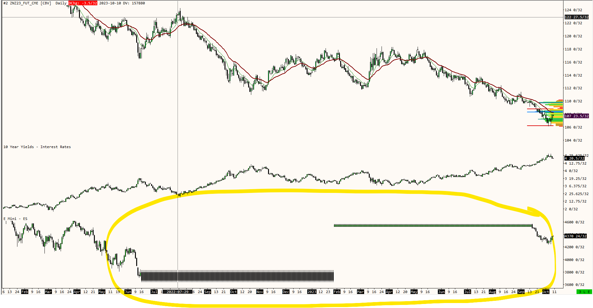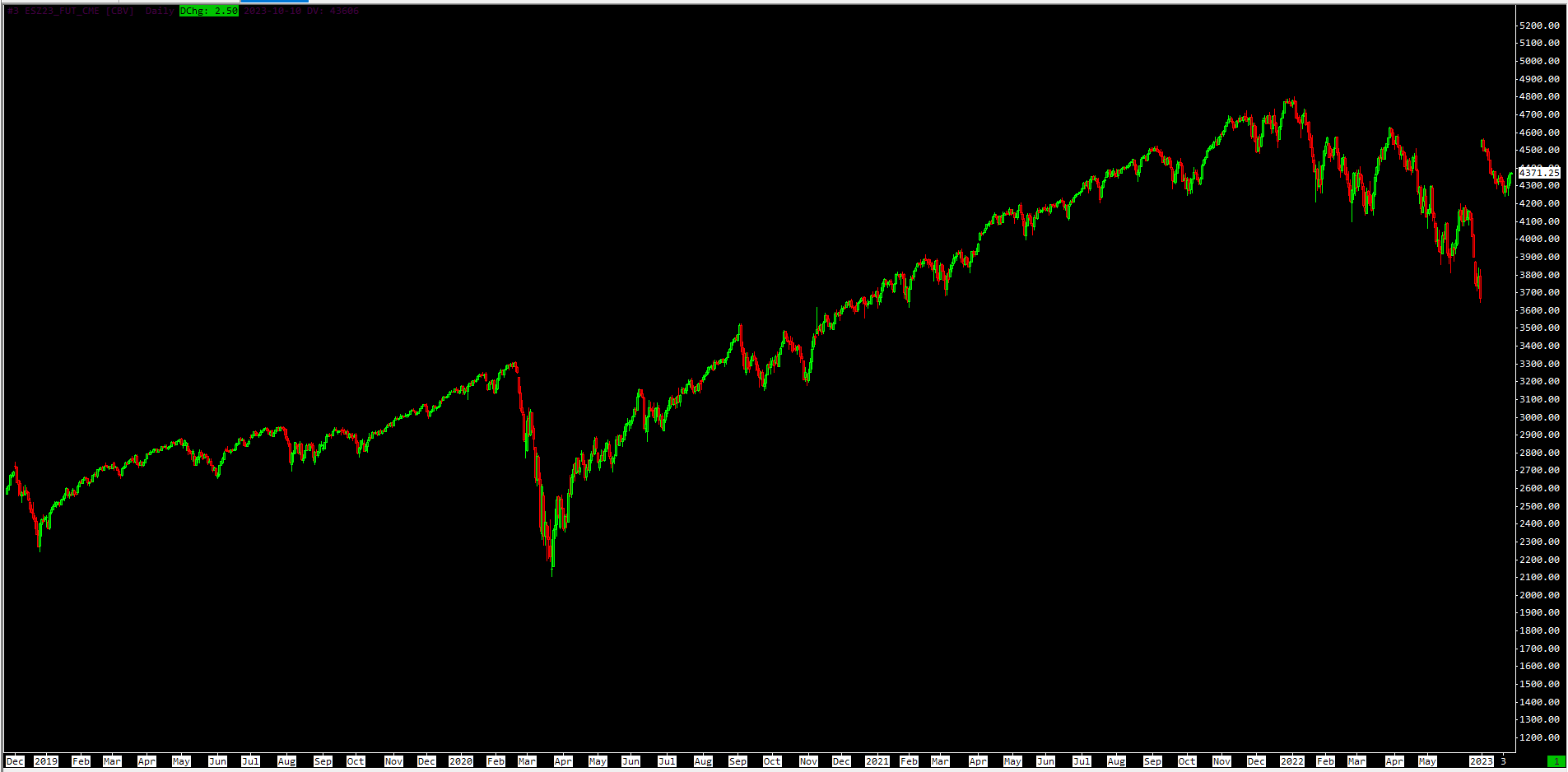 We are not having any issue with the data ourselves, therefore we looked a little closer at your images and we see that your ES Daily Chart is missing data from June of 2022 to some time in 2023. This corresponds to where you have the issue in the one chart. You need to force a redownload of the data in order to get that missing data into the system. Follow the instructions at the following link for the ES chart and make sure all the data properly downloads. If it does, then your other chart should correct itself: Continuous Futures Contract Charts: Re-Downloading Continuous Futures Contract Data For the most reliable, advanced, and zero cost futures order routing, use the Teton service: Sierra Chart Teton Futures Order Routing |