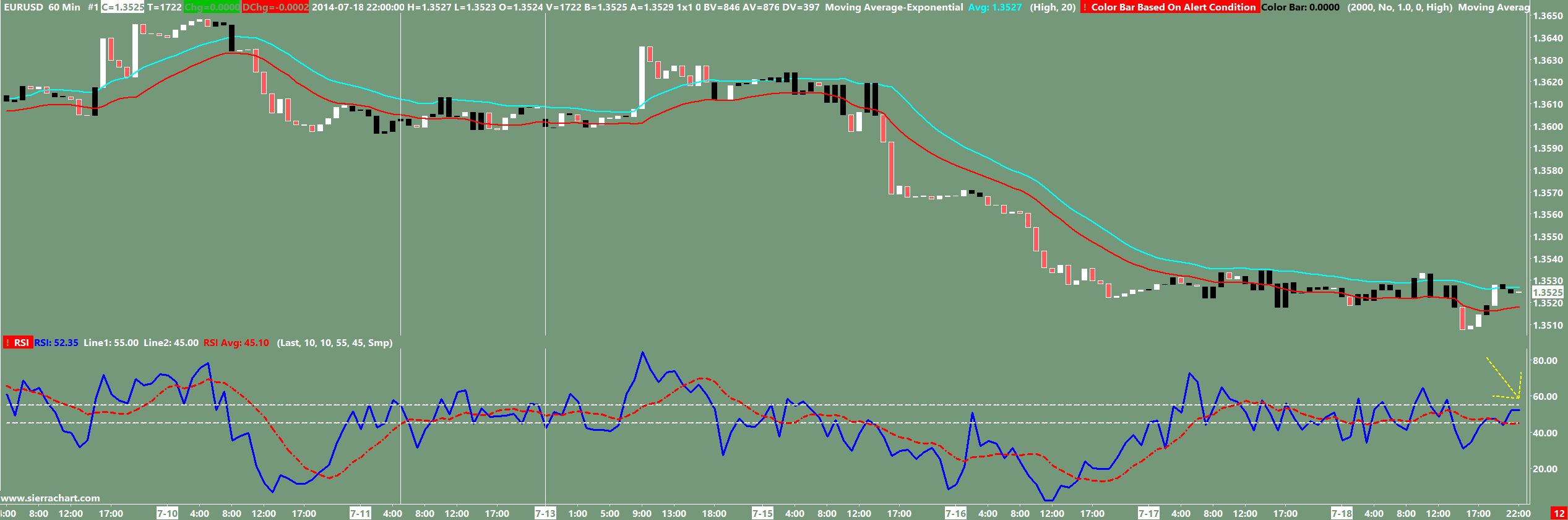 Hi The problom is : The alert manager showed an alert on the last Bar Friday , where the RSI was not above the 55 line , ( see arrow ) ,so there should not have been an alert. And this happened on a number of charts. jaban |