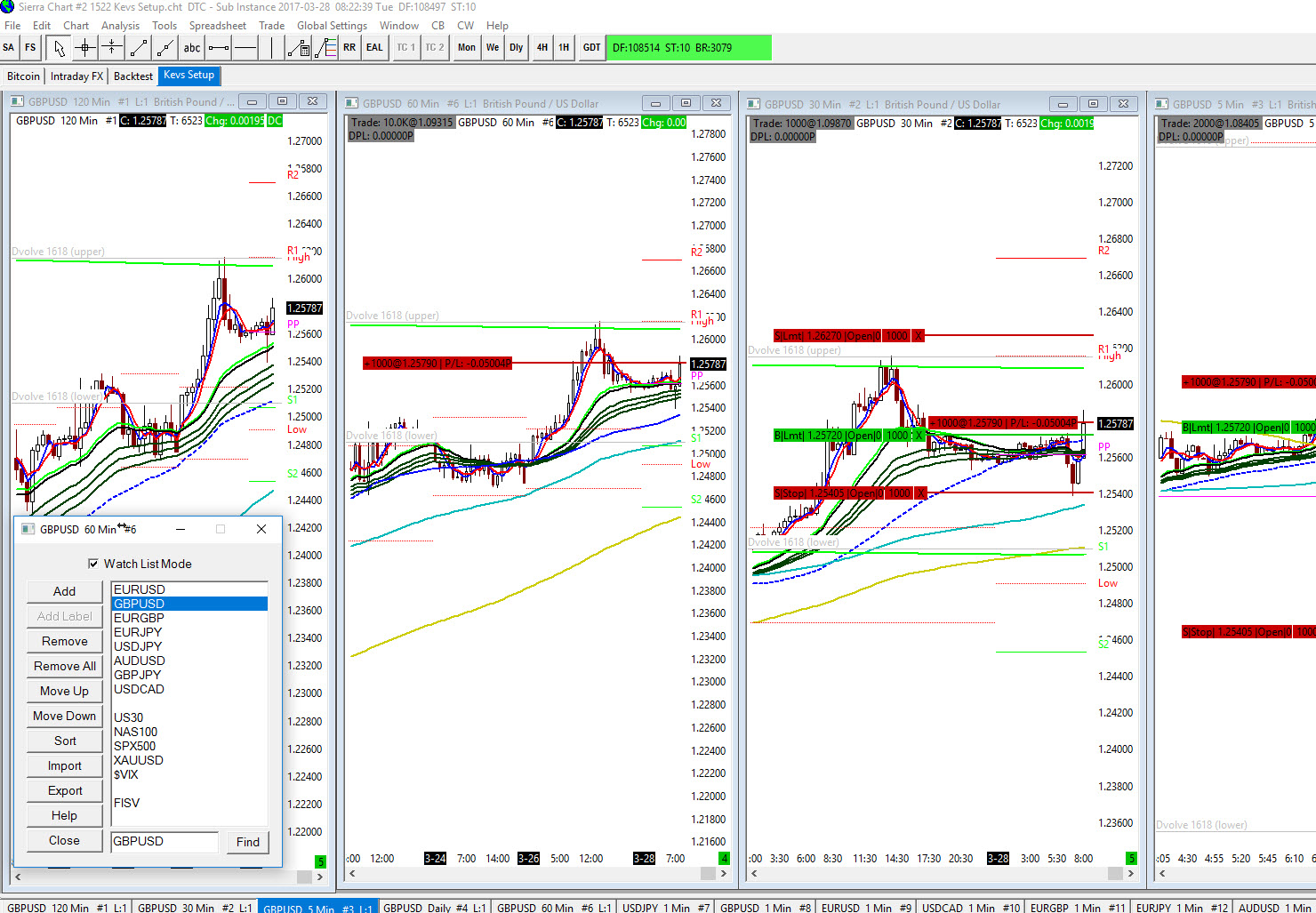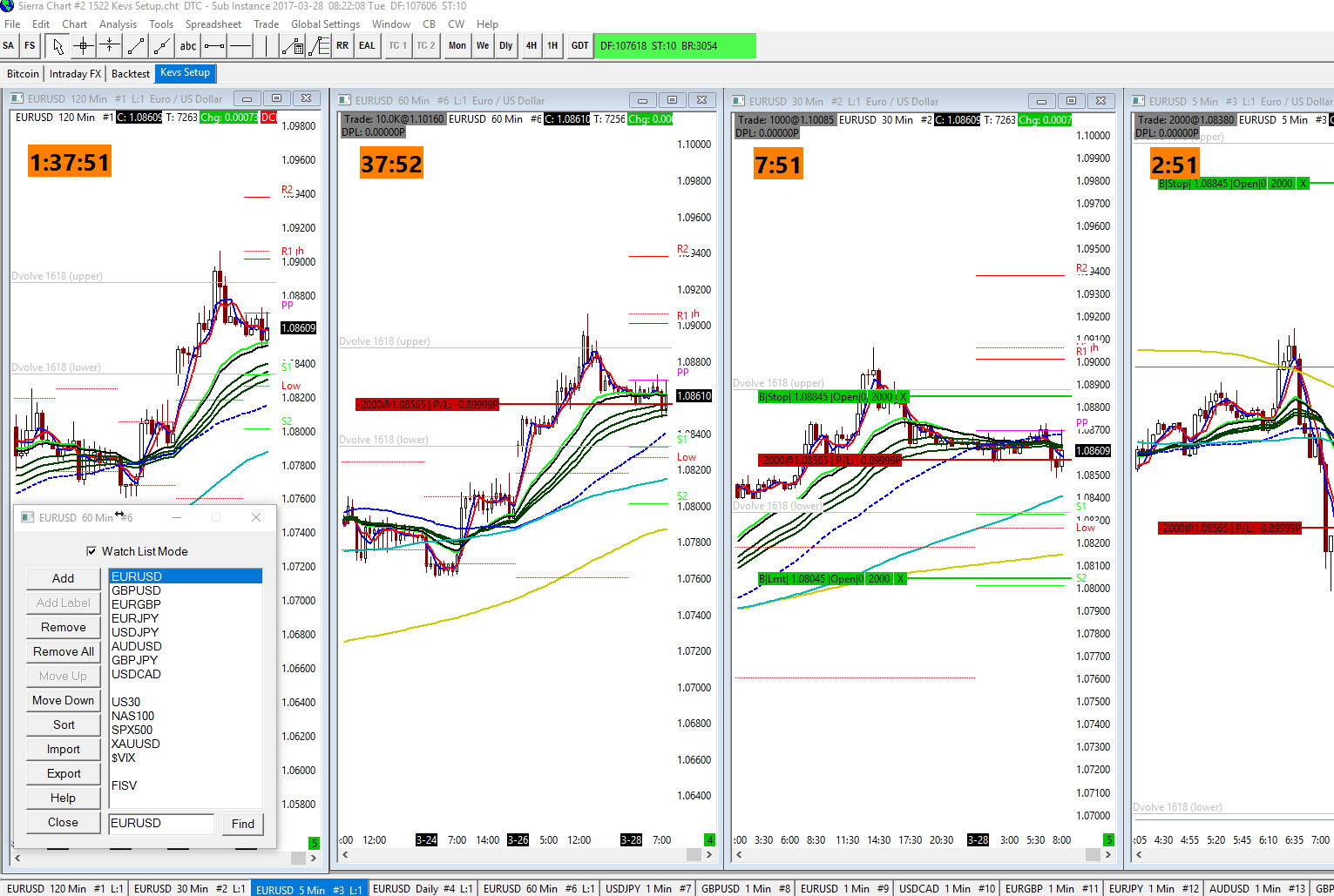 Just to report a small bug I noticed with this Study, on adding this to a chart, in the Parameters I see you can move the Timer around the chart and click Apply in the Study Settings to ensure you are happy with the location before closing the dialogues and returning to your main Price Charts. On changing Parameteres within the Study Settings window "Initial Horizontal Position From Left" or the "Initial Vertical Position From Bottom" parameters and clicking "Apply" in the Study Settings window, the Timer isn't translated to the new location on the chart.To repeat Bug Steps: 0) First add the countdown timer study to a chart so that it is visible 1) Update the "Initial Horizontal Position From Left" or the "Initial Vertical Position From Bottom" parameters you want to use 2) Click Apply (notice that the clock doesn't move) 3) Set "Use Current price For Vertical Position" to Yes 4) Click Apply 5) Set "Use Current price For Vertical Position" to No 4) Click Apply (now you will see the Timer move to your desired location. 5) Repeat this process to move the Timer around the chart until you find your desired location EDIT ADDITION (08:19) Just noticed that although I have saved this study into my study collection which are applied to all of my charts, when I switch charts (Click through my Watch list symbols), the study disappears? But when I go back to the symbol I added it to initially, it is there. I think that I misunderstanding either the location on this study or there is a bug in the way it is drawn ad which charts it is drawn on. See attachments. Date Time Of Last Edit: 2017-03-28 07:24:52
