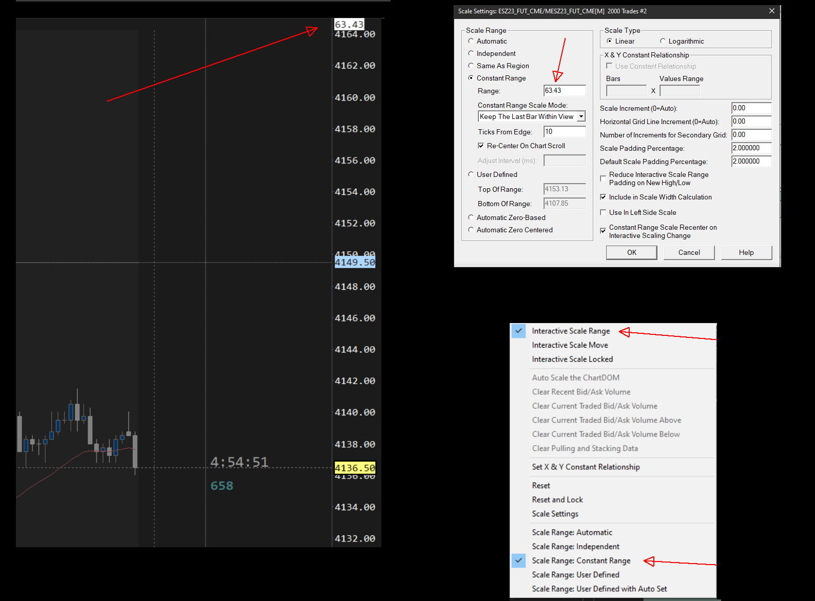 That value only will show up, when you left click in the price scale on the right side of the chart and change the Scale Range. Otherwise it will not appear. We have never known there to be a problem with this ever. It has never been reported before to our knowledge. We want you to close the Chartbook and reopen it. Sierra Chart Support - Engineering Level Your definitive source for support. Other responses are from users. Try to keep your questions brief and to the point. Be aware of support policy: https://www.sierrachart.com/index.php?l=PostingInformation.php#GeneralInformation For the most reliable, advanced, and zero cost futures order routing, use the Teton service: Sierra Chart Teton Futures Order Routing |