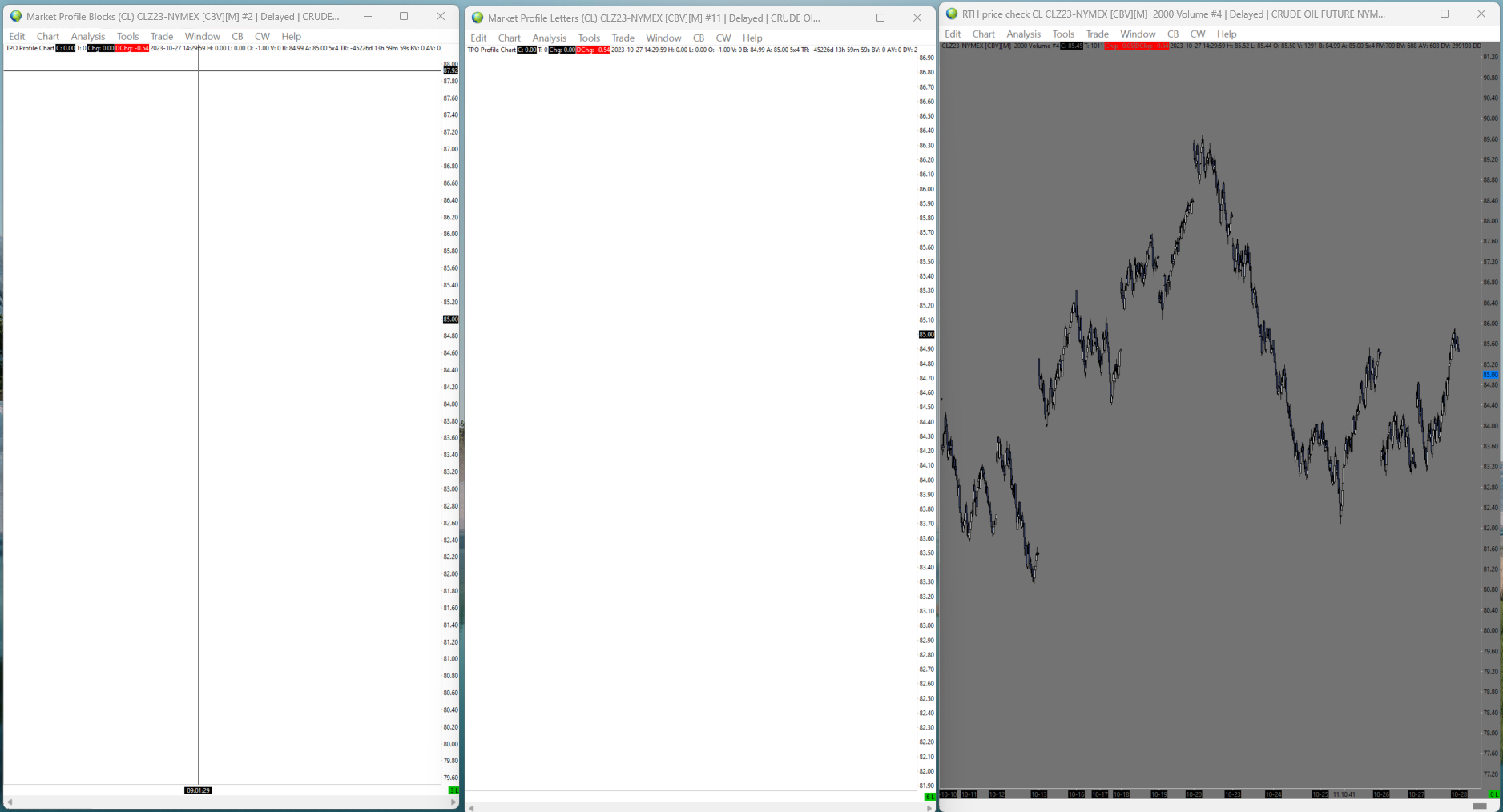 We are not seeing any issue with the chartbook you have given us. Everything is showing up properly. Start by resetting your vertical scale by following these instructions: Chart Scale and Scale Adjusting: Resetting the Scale Then scroll back your chart and see if you can view the profiles further back in time and that it is not just a horizontal scaling issue. -- Separately - you have posted this in an existing thread that is completely unrelated to your question. Please start a new thread when you have an issue to post. For the most reliable, advanced, and zero cost futures order routing, use the Teton service: Sierra Chart Teton Futures Order Routing |