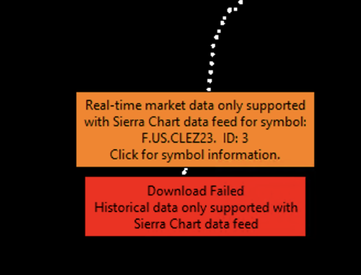 Check the setting for "Global Settings >> Data/Trade Service Settings >> Common Settings >> Allow Support For Sierra Chart Data Feeds". It sounds like this is set to "No" for some reason. Change it to "Yes", then select OK to close that page and then select "File >> Reconnect". If the above is not the case, then we need to see your Message Log by following these instructions: Follow the instructions here to clear the Message Log: Message Log: Clearing the Message Log Close all of the Chartbooks with "File >> Close All Chartbooks". Open a single chart for the symbol you have an issue with through "File >> Find Symbol". Tell us that symbol of the chart. Tell us about *one* symbol only. Disconnect from the data feed with "File >> Disconnect". Connect to the data feed with "File >> Connect to Data Feed". After the connection and after about 10 seconds, provide a copy of the Message Log following these instructions: Support Board Posting Information: How to Post Your Message Log (Required In Some Cases) We will then determine what the problem is. For the most reliable, advanced, and zero cost futures order routing, use the Teton service: Sierra Chart Teton Futures Order Routing |