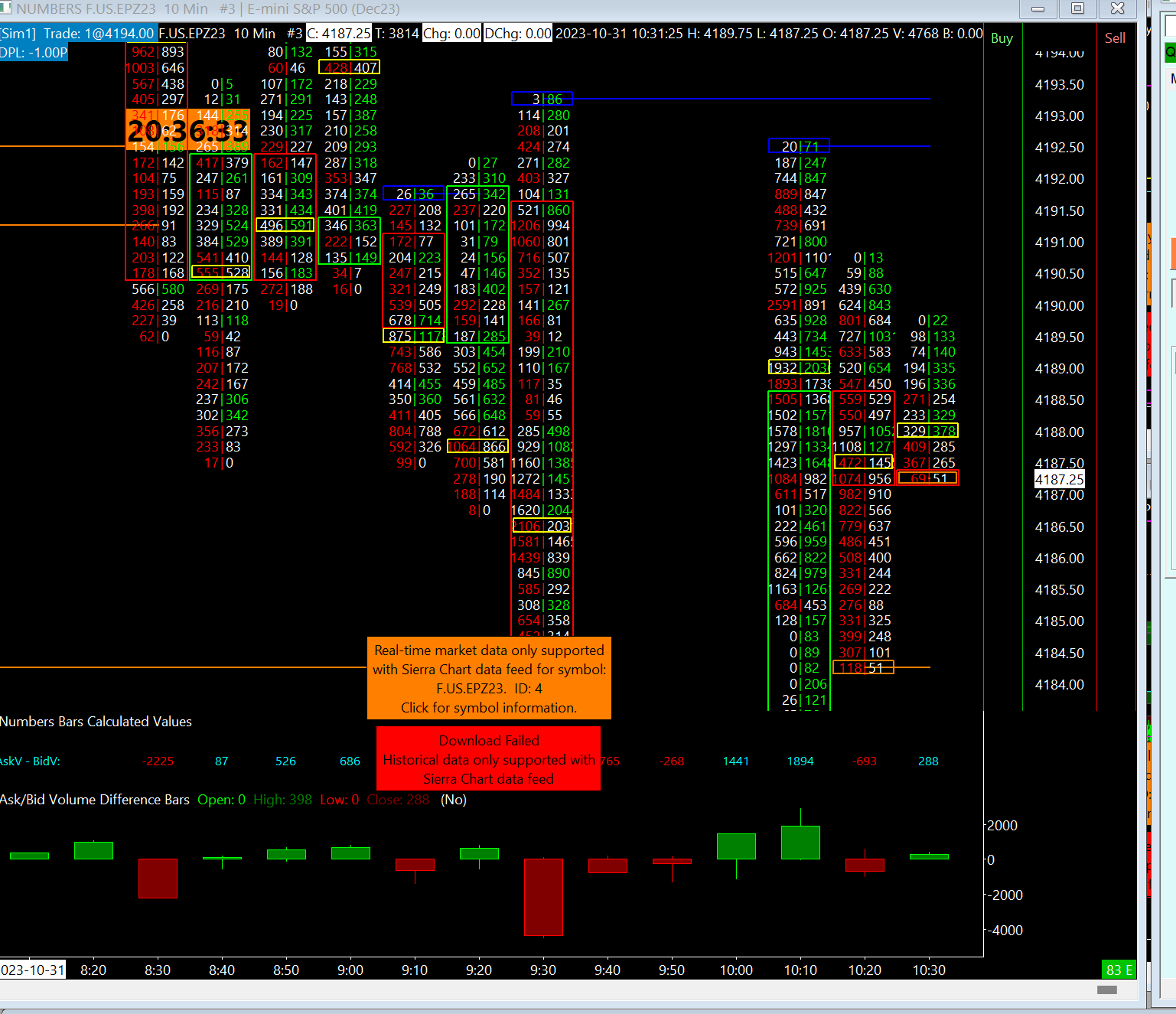 Sierra Chart Support - Engineering Level Your definitive source for support. Other responses are from users. Try to keep your questions brief and to the point. Be aware of support policy: https://www.sierrachart.com/index.php?l=PostingInformation.php#GeneralInformation For the most reliable, advanced, and zero cost futures order routing, use the Teton service: Sierra Chart Teton Futures Order Routing |