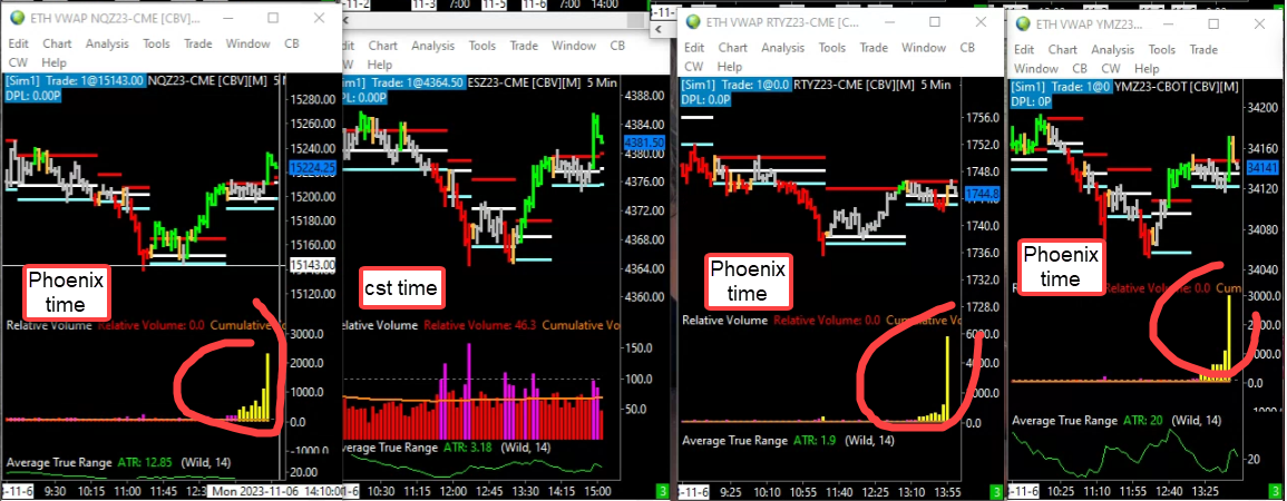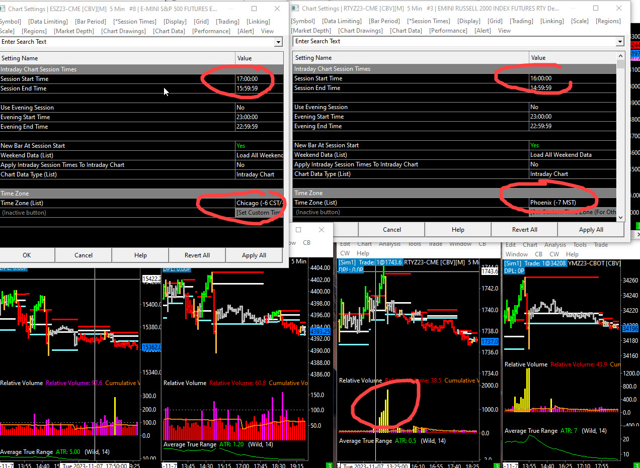 I am trying to change my rel vol charts to my time zone (mountain, Phoenix) and it is not picking up the correct rel vol. If I change it to the open and close times for Chicago it is correct 17:00 cst open and 15:59 cst for close. When I try to adjust the times to my Phoenix time an hour earlier, it is not picking up the correct rel vol. I have the history set at 30 days.