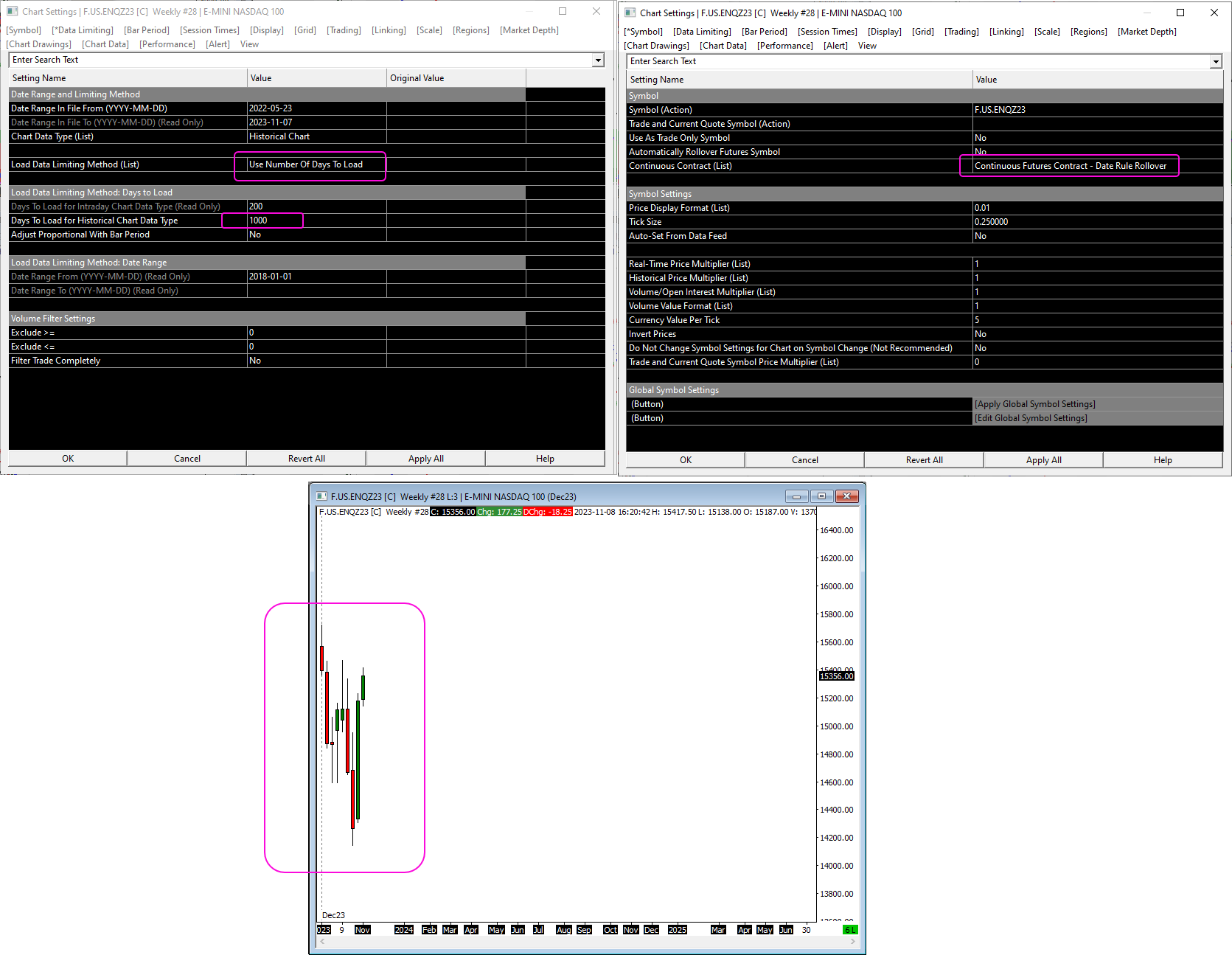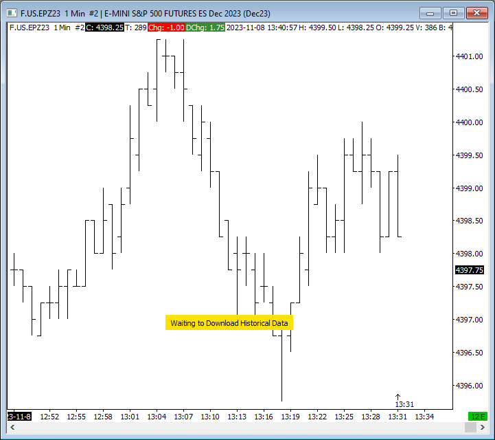 Dear Support I'm noticing on instance2 that my Historical W-D charts and others are often stuck in "Waiting to Download Historical Data" with no message in the log to say why. I'm also seeing an issue with continuous contracts where is says "Downloading Continuous Contract Data" and some, not all, current (Z) futures contracts like YM and NQ. with timeframes Hist_W Hist_D and Intraday W >> 1 min. I have have opened a clean Chartbook in instance2 and added 2 charts it's showing the same message. See screen shot. I've also deleted the instance2 and recreated with same issue. As mentioned I'm also having issues with continuous contracts which I've not had before. Image attached. I'd also prefer to access the data in instance 1 rather than having 2 sets the same. Is this possible? Any thoughts? Date Time Of Last Edit: 2023-11-08 16:25:45