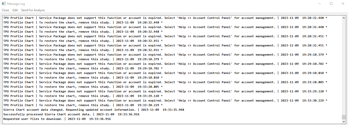 TPO charts require Service Package 11 or 12. Right now you have an evaluation of service Package 12 for the next 25 days so you do have TPO charts now. Sierra Chart Support - Engineering Level Your definitive source for support. Other responses are from users. Try to keep your questions brief and to the point. Be aware of support policy: https://www.sierrachart.com/index.php?l=PostingInformation.php#GeneralInformation For the most reliable, advanced, and zero cost futures order routing, use the Teton service: Sierra Chart Teton Futures Order Routing |