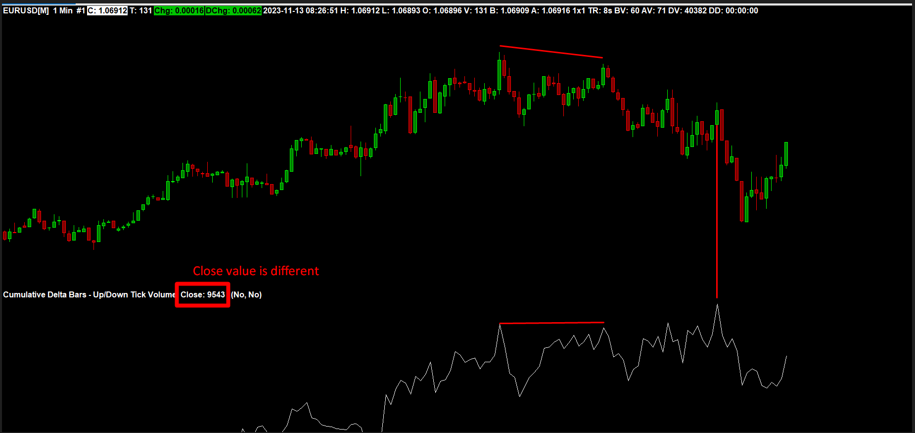 There are some difference between same charts with CVD. One of them shows CVD divergence at certain point but the other one shows nothing. Is there anybody who faced this situation? I am sharing the screenshots as attachments.