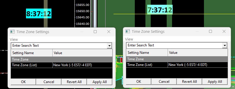Since the time change my 2nd instance (SierraChartinstance_2) of SC has been behind by 1 hour. Both the main instance and the second instance have the same Time Zone settings so I am at a loss. My main instance is correct (8:37:12.) The Second Instance (7:37:12) fell back 2 hours instead of 1 with the time change. Any ideas to try for a fix?