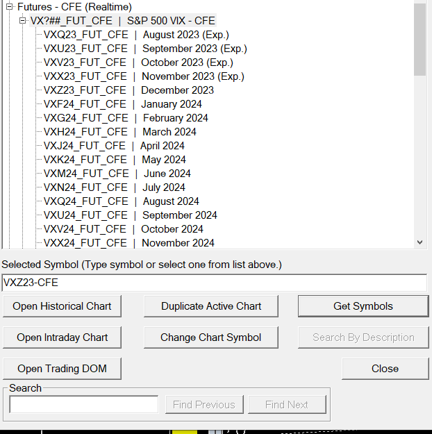 I see where VX future outrights are availale to be charted under Futures-CFE. There are exchange traded spreads on the VX products, but do not see where they are available under this area. Can they be found somewhere else?