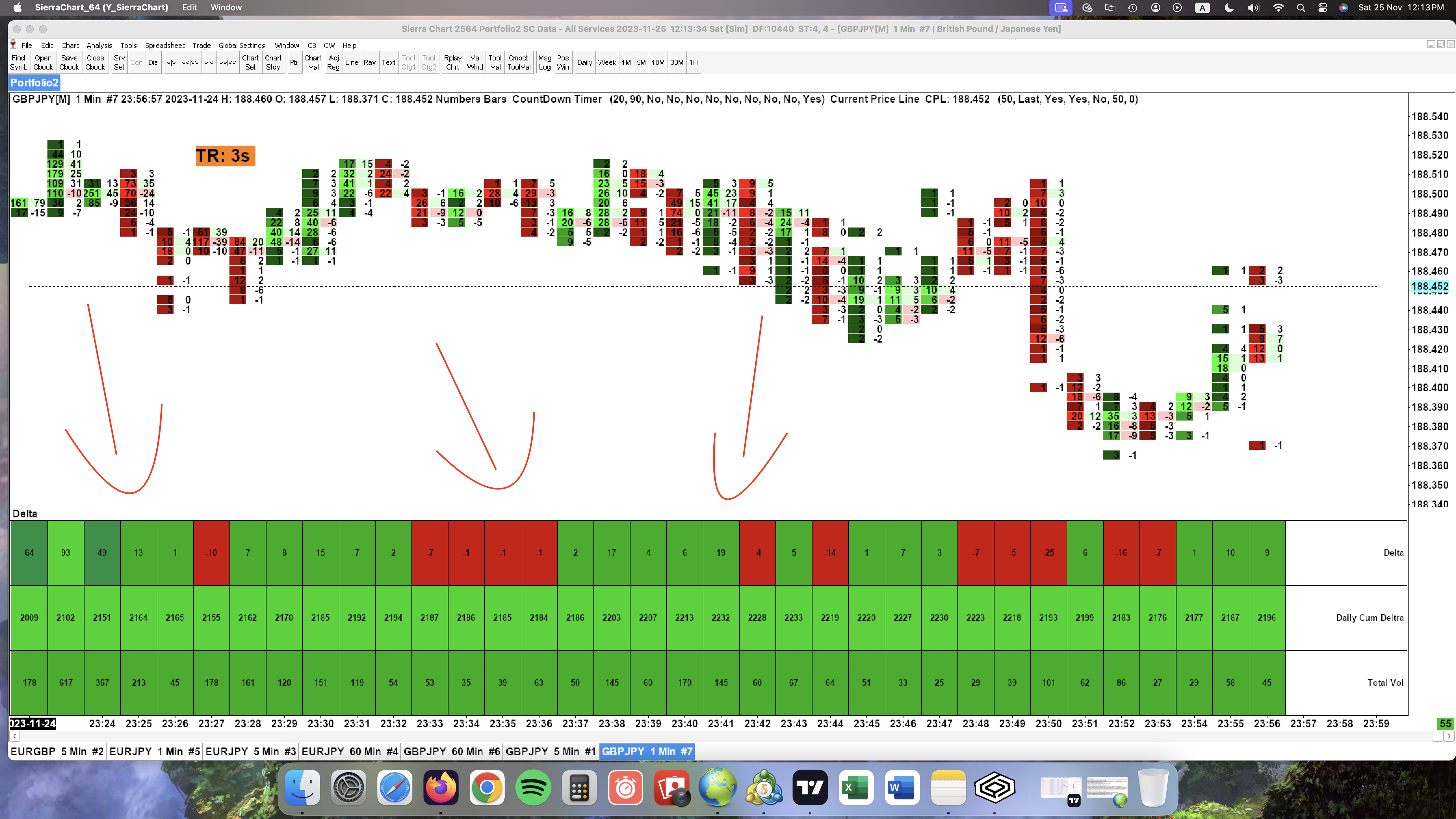 Hello! Can you please tell me how to adjust the height of the rows of the study named "Numbers Bars Calculated Values" which are being displayed at the bottom of my chartbook? The rows are really big and it blocks almost half of the screen, covering important past data candles that must also be diplsayed in order for me to have a better view of the price action. I will add a screenshot of my chartbook layout so you can udnerstand exactly what I am referring to. Waiting for your reply! Thanks in advance. |