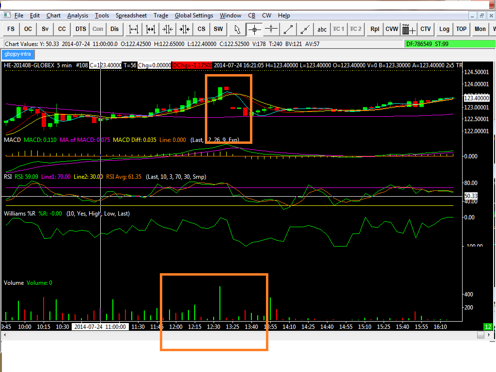 With Interactivebrokers Am missing data from 12:35 PM to 13:25 PM today when I logged off Chart just shows break (gap down, no continuation) from 12:35 to 13:25. See attachment of Lean Hogs (Symbol: HE) (see 2 orange highlight boxes) This problem arises for most of my chart windows of various contracts Why does this happen? How can I fill in missing data? Date Time Of Last Edit: 2014-07-24 20:39:51
