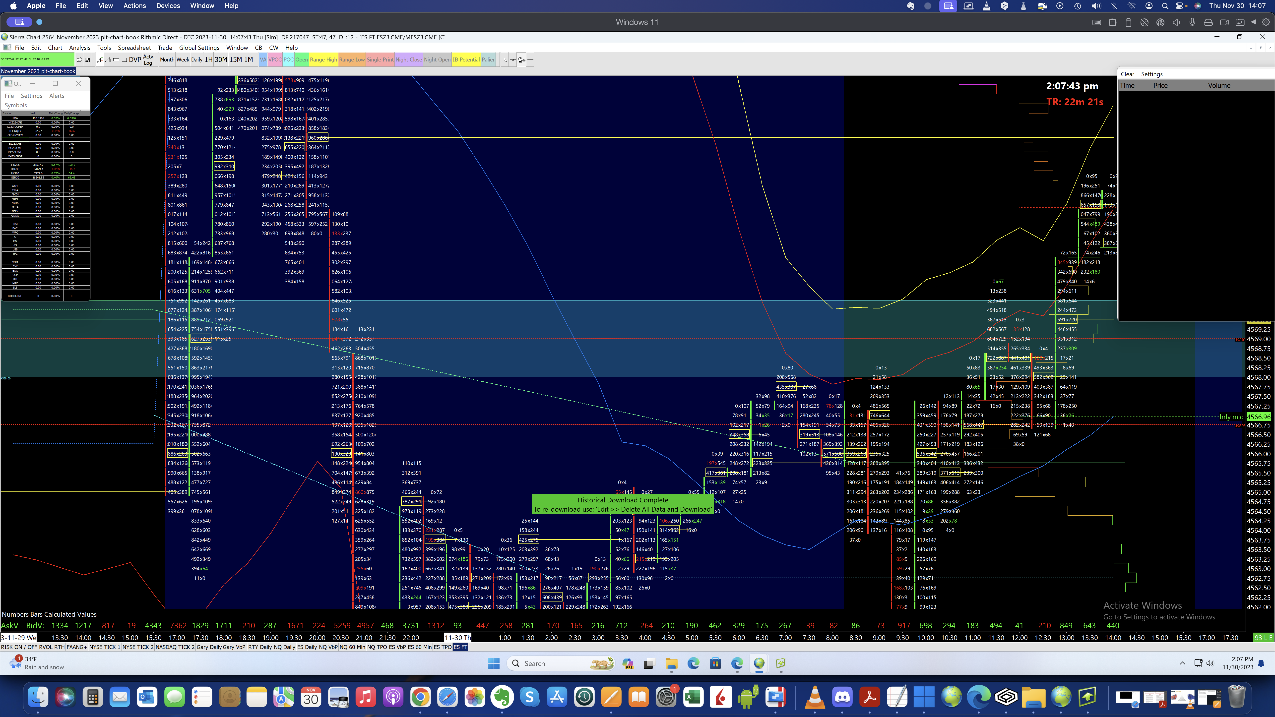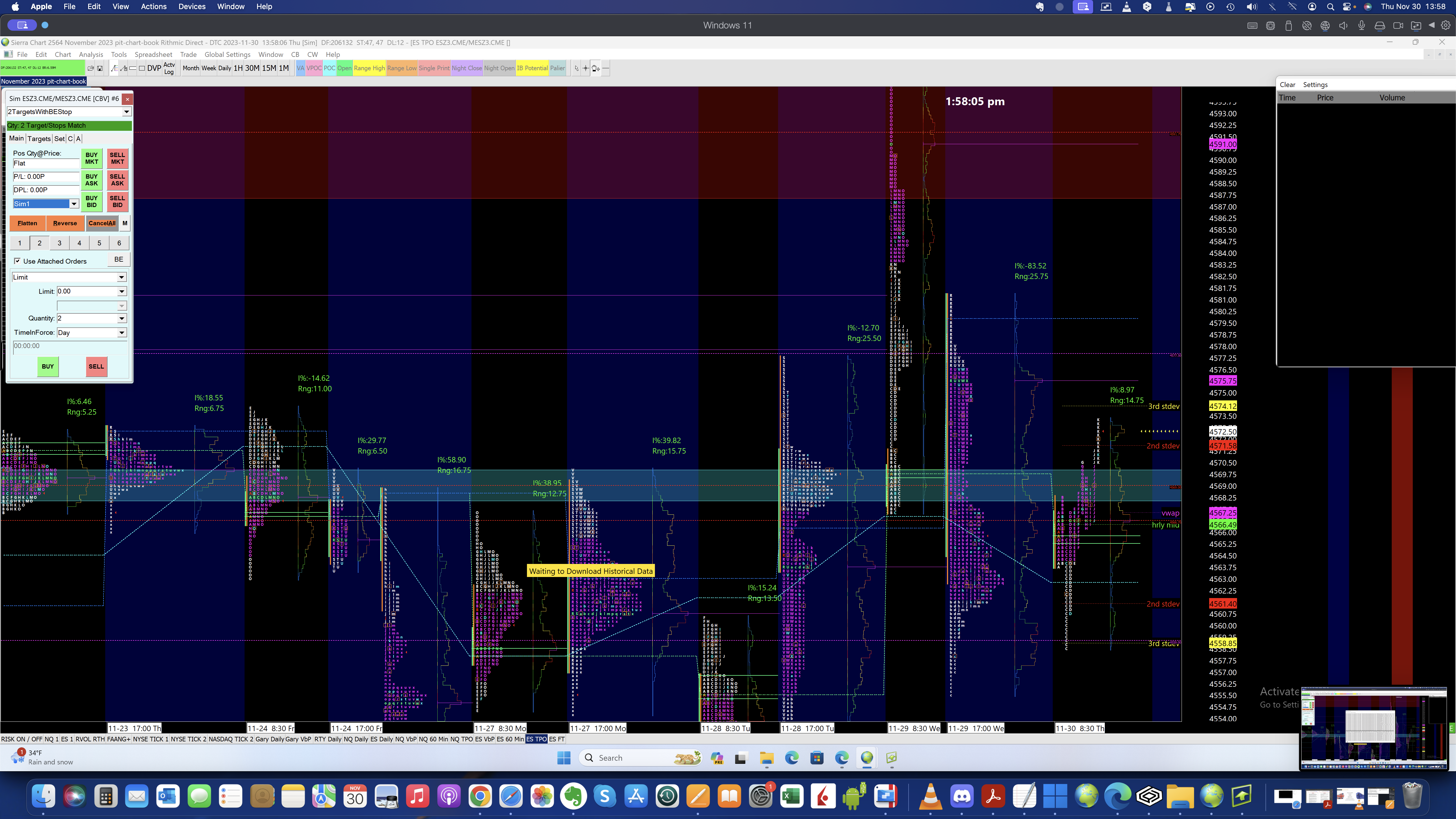 Dear Friends, Below you will find 2 Challenges: 1. Screenshot 2023-11-30 at 13.58.06 - The Time and Sales Windows are stuck to the right and I cannot move them, even trying with Detach/Attach, there is no button to close it or anything as it blocking the view. 2. Screenshot 2023-11-30 at 14.07.43 - The DOM is attached to the TPO CHART and I would like to attach it to the Number Bars Chart ( FootPrint). Thank you for your help Rodney |
