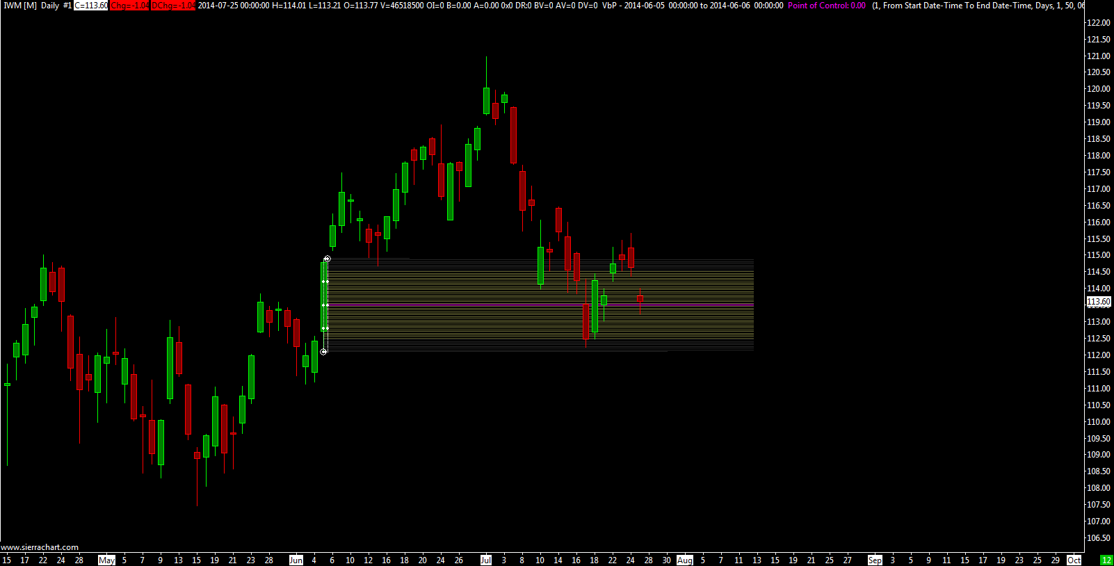 How do you get better resolution with volume profile on a daily chart? The profile seems to be showing all the prices with the same volume for each individual day. I am using SC Exchange Data My settings: Intraday Data Storage Time Unit set to 1 Tick Max Historical Intraday Days to Download : 500 (for both options) I have tried several different settings in the studies setting dialog with no success. As an example I selected a single day with the DRAW VOLUME PROFILE tool - here is the screen shot: http://www.sierrachart.com/image.php?l=1406426474826.png Thank you |