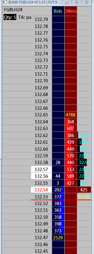 Hi. please take a look at the attached screenshot. The symbol is FGBLH24 on EUREX; Service is trading evaluator. I use Denali Data Feed. I compared it with tradovate and their DOM is fine. I use SC 2543 Date Time Of Last Edit: 2023-12-05 13:31:06