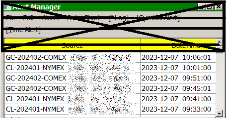How to disable the Always on Top feature of the Alert Manager? Then it's possible to tuck the unchanging static portion of the Alert Manager window under the chart so as not to block that important information. |