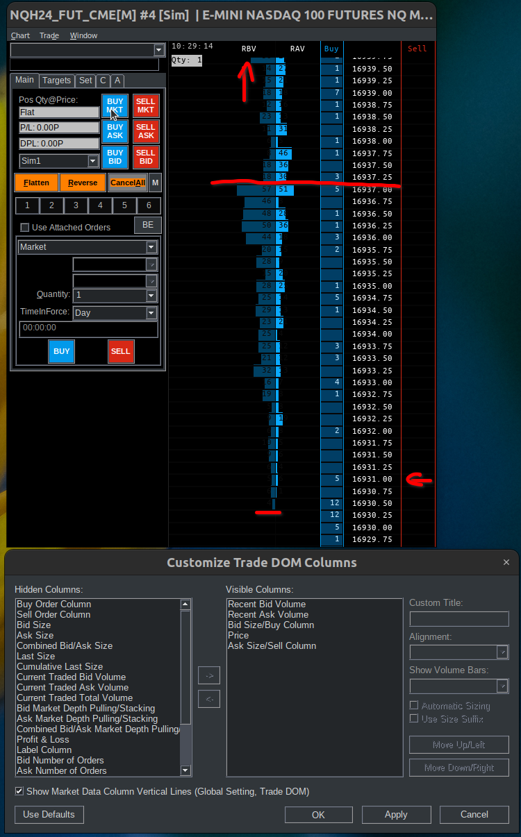 Hello SC Support, It still seems to be a problem. I am now running SC version 2571 but am still experiencing an issue with the Recent Bid Volume only. It seems that the column does not show up when scrolling on the DOM past the lowest recorded Recent Bid Volume. Described differently, if the lowest recorded Recent Bid Volume is no longer displayed on the DOM the Recent Bid Volume goes blank. Thank you in advance. |