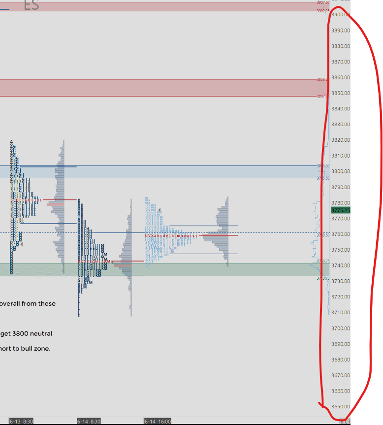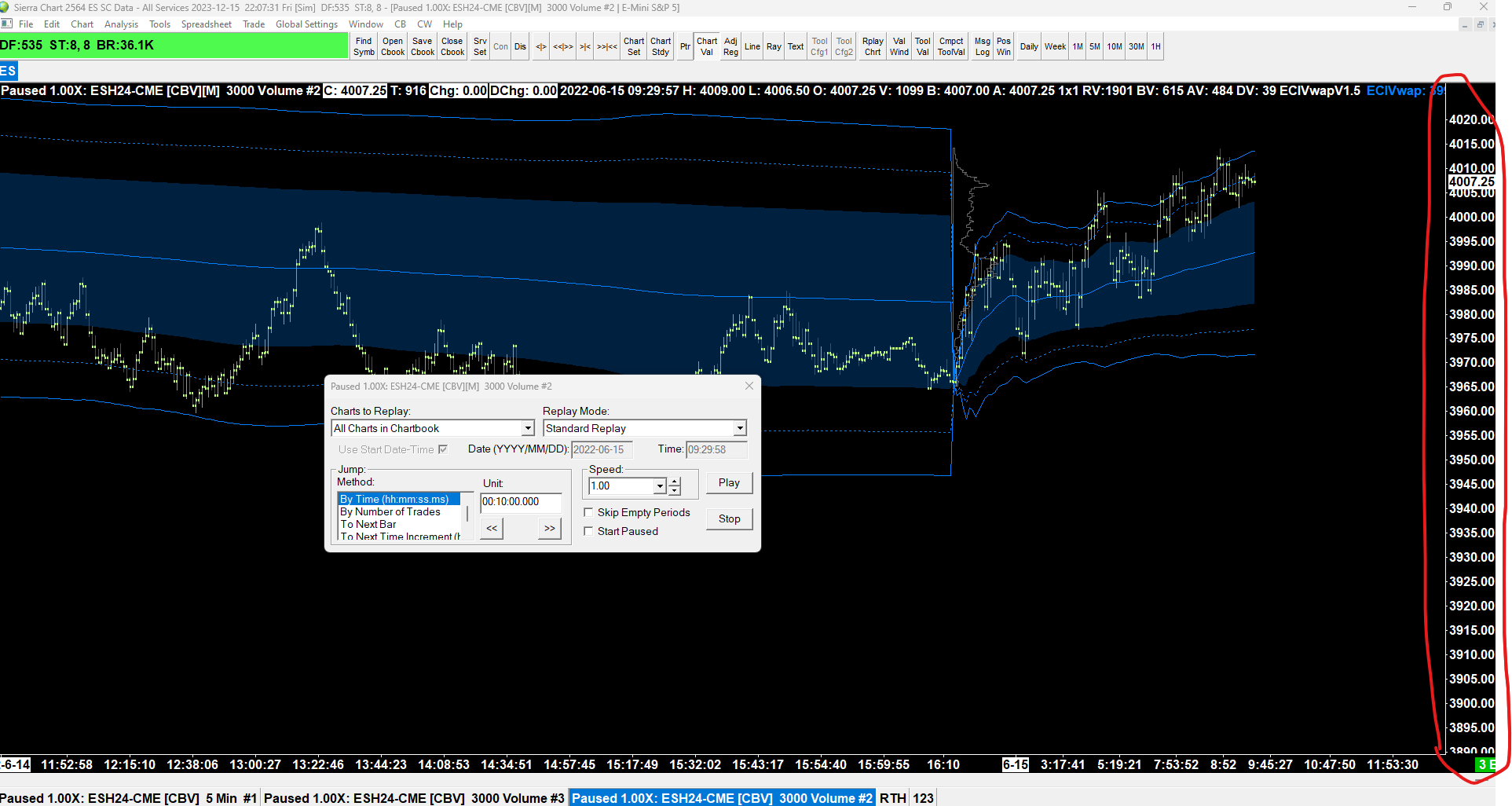 Hi, No problem, I will try to explain again. Basically, I wanted to replay my chart for the date 06-15-22 and use the levels that are marked in 2.png (The levels were made on 06-15-22 by someone. I am using it to practice execution). However, the prices at which the levels were made in 2.png and the replay chart ( 1.png) price action are not the same. For example, in 2.png, there is a green level thats anchored at 3740.75 & 3733.25 and if I use the same prices at the replay sierra chart, there won't be anything because the price action in SC is up by around 200 points approx. Only if I get my chart price action to around 3700 - 3800 will I be able to plot the levels accurately in SC and do execution practice. Hope this was clear. Thank you |